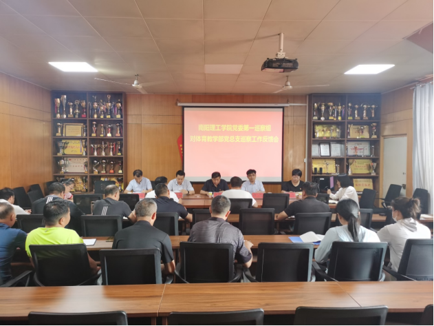 6月9日上午,校党委第一巡察组举行校内巡察情况反馈会议,巡察组全体成员、学工党委党委委员及所属党支部班子成员和体育教学部领导班子成员、副科级以上干部、教师代表参加会议。
