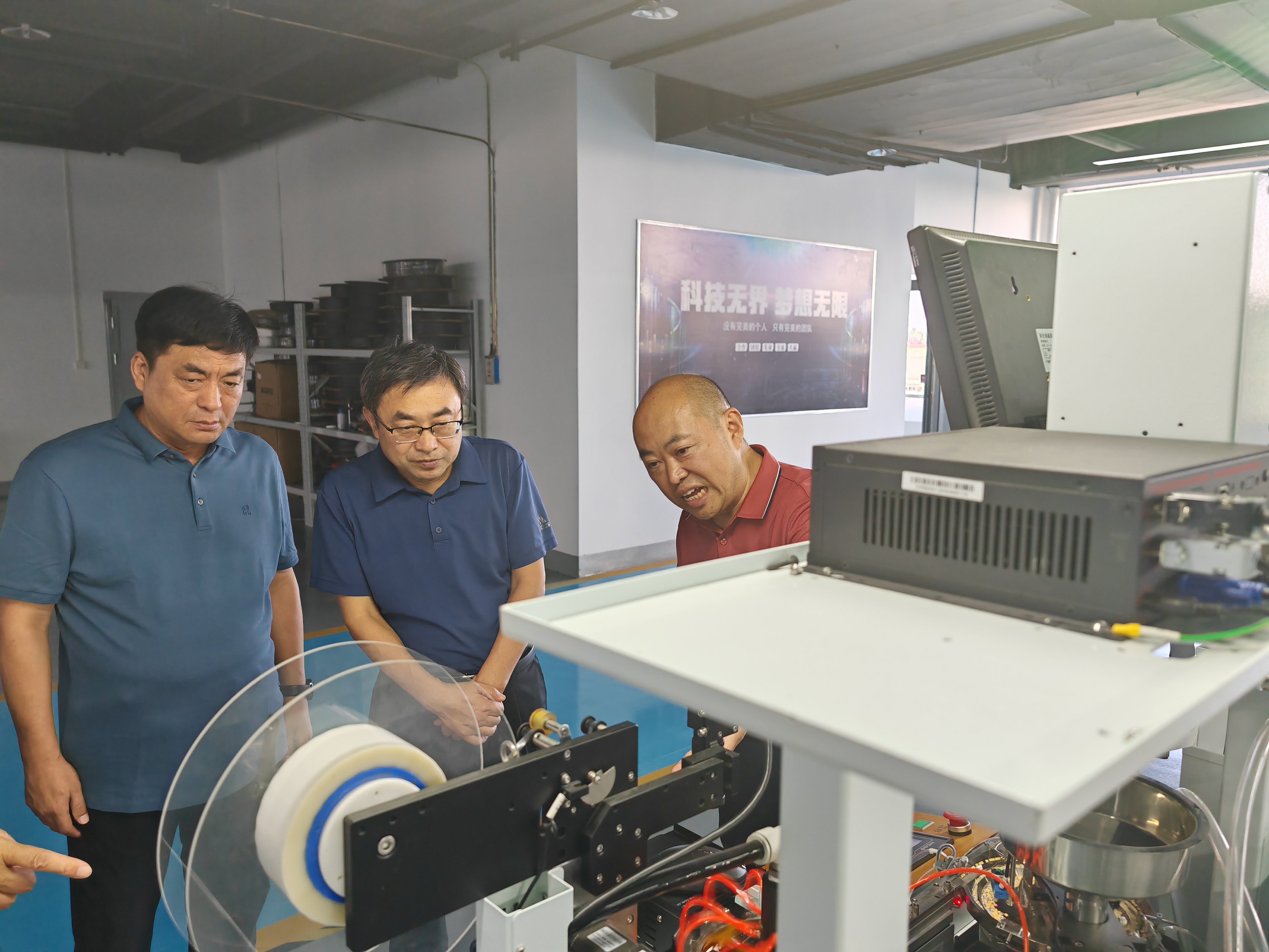 在赵玉涛等人陪同下,安士伟一行参观了河南畅达半导体有限公司的高标准现代化办公及生产车间。河南畅达半导体有限公司是一家集先进激光应用及半导体自动化智能化装备研发、智造、销售及售后服务于一体的高科技平台型企业,是我校与南阳市宛城区人民政府共建南阳理工学院校友回乡创新创业产业园的首个校友企业。