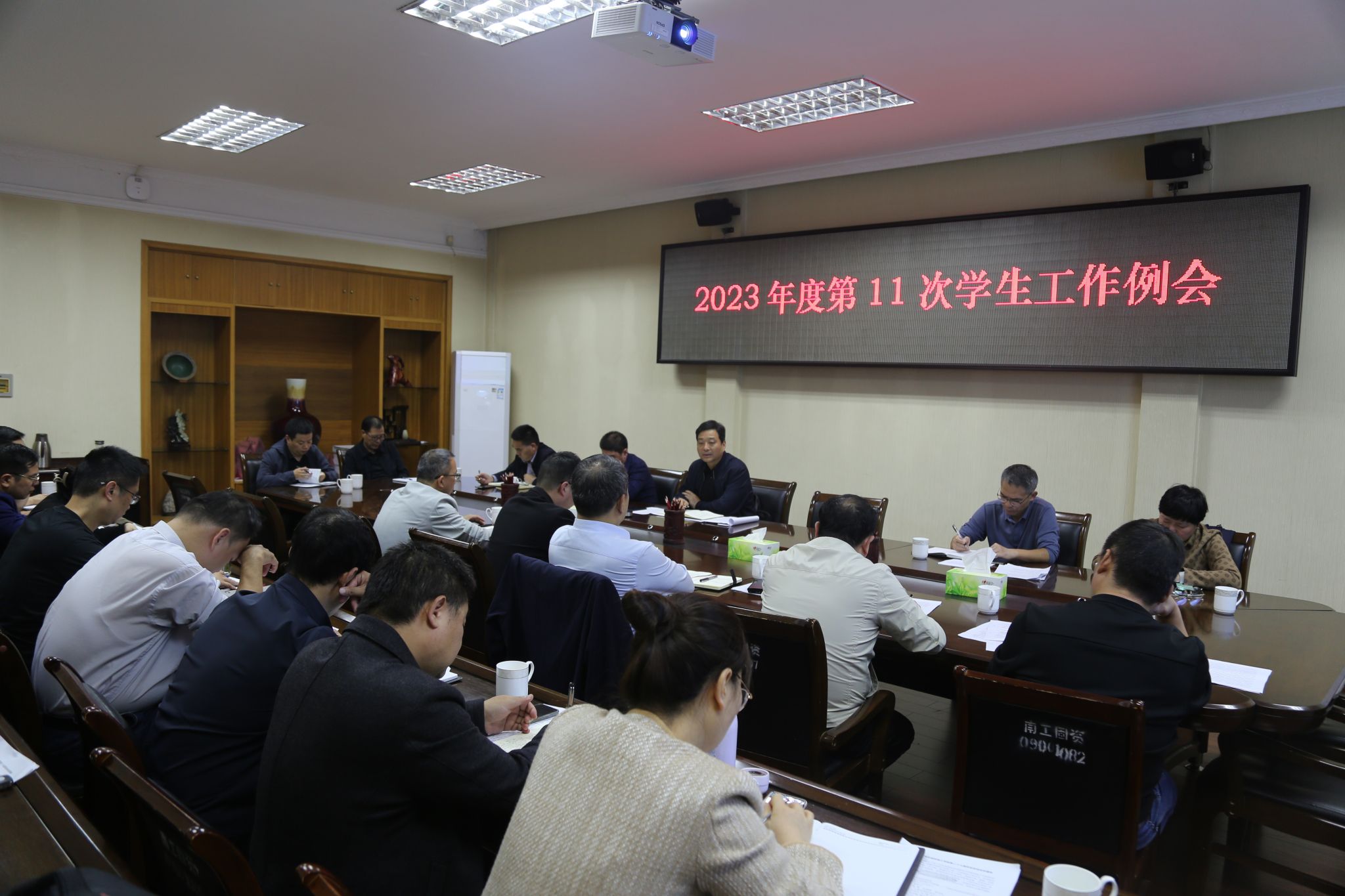 本网讯(特约记者/张启鑫)10月9日下午,校党委副书记、工会主席董豪主持召开我校2023年度第11次学生工作例会。学生处、校团委、心理健康教育中心、保卫处、后勤服务中心、校医院、依法治校办公室等单位主要负责人,各教学院党委副书记参加会议。