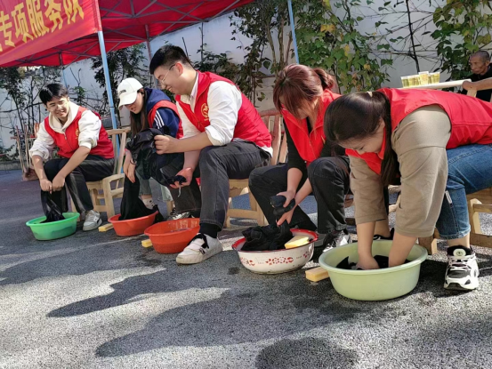 外国语学院“青春伴夕阳”志愿服务队来到四棵树乡高峰庵村幸福大院开展敬老、爱老、助老志愿服务活动。服务队队员为幸福大院的五保户老人洗刷床单、衣服、鞋子,打扫室内卫生,为老人洗头、洗脚、修剪指甲、读书读报等活动。通过敬老、爱老、助老志愿服务活动,在关心老人、帮助老人、奉献社会中教育学生,引导学生,将“爱出助人,爱返育人”的教育理念落到实处。