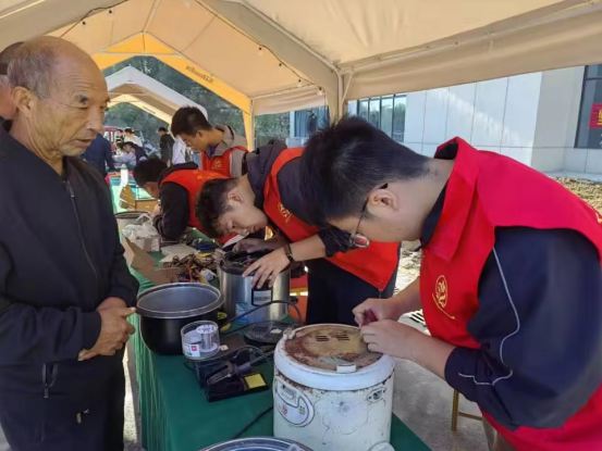 信息工程学院开展的家电义务维修活动。志愿者们支起帐篷,备好工具,拉起条幅,摩拳擦掌,对于居民们送来各类有问题的家电进行现场维修,并对用电注意事项进行讲解。随着一件件家电在志愿者们的手中“重获新生”,居民们对志愿者的技术以及服务态度赞不绝口。