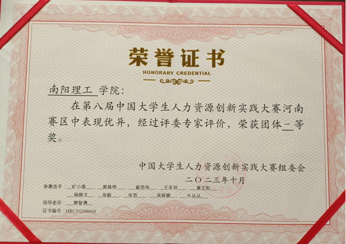本网讯(学生记者/牛丛丛)近日,第八届中国大学生人力资源管理创新实践大赛河南区域赛在河南科技学院举行,我校范蠡商学院代表队勇夺河南省一等奖,以第五名的成绩进入全国总决赛。