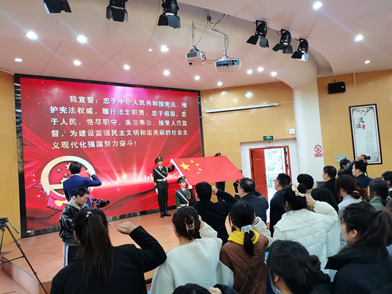 百名学生代表在开幕式上齐声诵读了《中华人民共和国宪法》部分条文;在国旗护卫队的护卫下,鲜艳的五星红旗绽放在会场主席台,领誓人手抚宪法,所有在场的师生代表们右手举拳,面向国旗,在领誓人带领下高声宣誓。