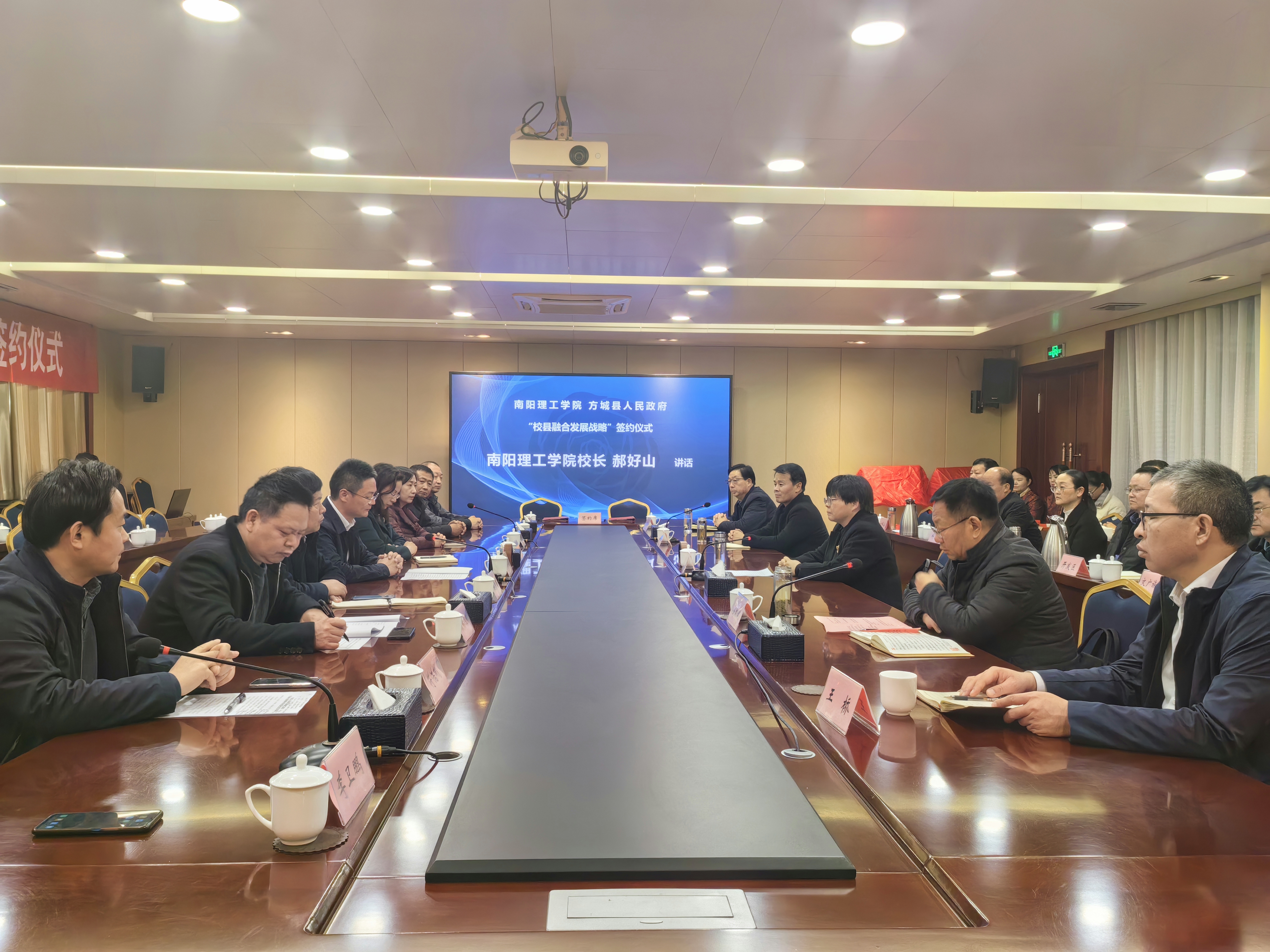 郝好山介绍学校基本情况,并对长期关心支持学校建设和发展的方城县社会各界表示由衷的感谢。他表示,方城县加快建设经济强县、文旅强县、生态强县,努力打造开放高地、创新高地,与人民共建幸福美好家园,县域经济社会呈现出稳中有进、进中提质的良好态势,形成了装备制造、超硬及硬质合金材料、医药制造三大主导产业,拥有中南钻石、勤大钢管等知名企业品牌,为校县合作打下坚实基础。此次学校与方城县人民政府共建“科技创新服务中心”,打造多元化平台合作模式,为校县合作开创了新的局面。下一步,校县双方将共享机遇、共担使命,携手共进、合作共赢,把教师的科技成果转移转化到企业的流水线上,把学校的优质资源运用到方城县的经济社会发展上。