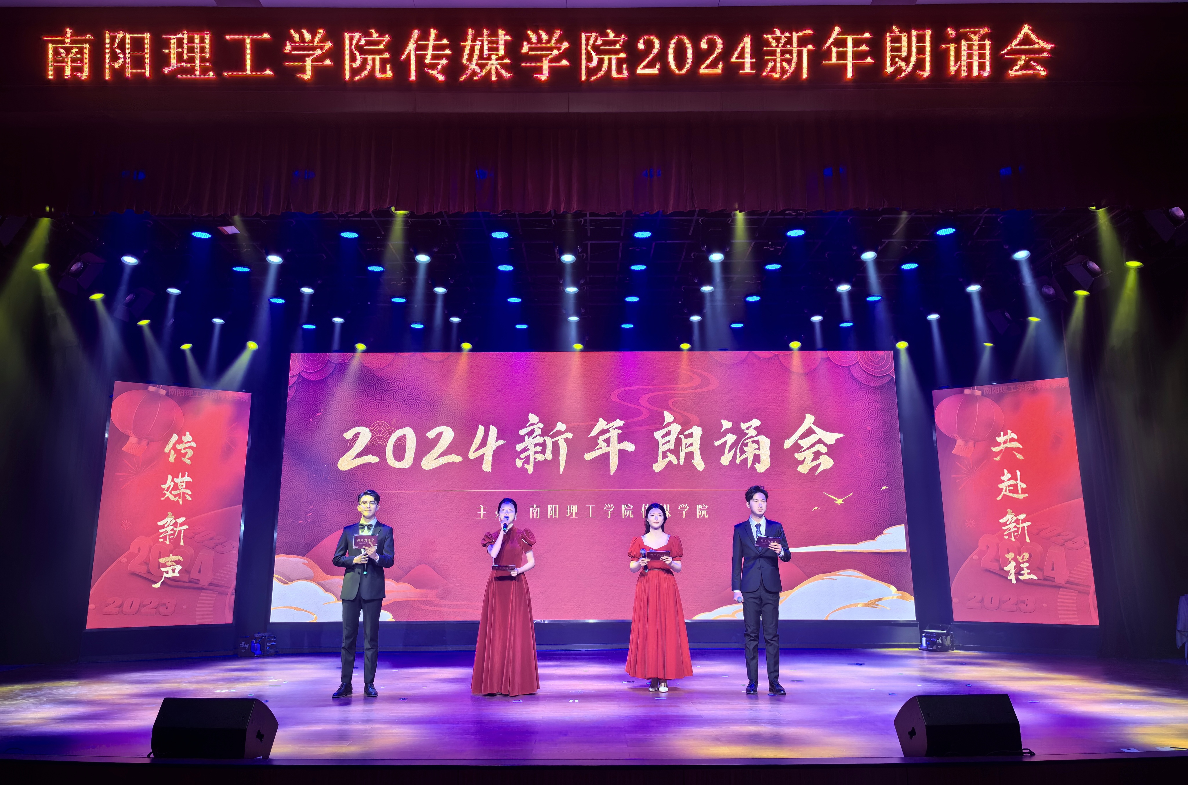 本网讯(特约记者/李艳丹)12月26日晚,由传媒学院主办的“传媒新声 共赴新程”2024新年朗诵会在东校区21教演播厅举行。校党委副书记、工会主席董豪,校纪委书记、监察专员于继武,副校长葛晨光、蔡广宇、高芳放,部分行政处室领导以及传媒学院的师生欢聚一堂,聆听经典,迎接新年。