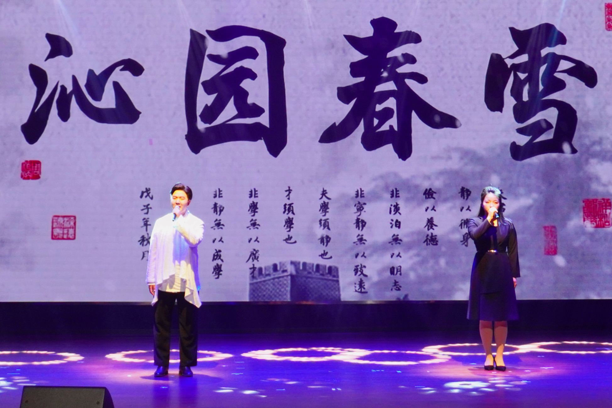 整场朗诵会分为“回眸经典”“璀璨新声”两个篇章。上篇播音与主持艺术专业的学子们带来《沁园春·雪》《在中国大地上报道》《将进酒》等经典作品,同学们富有语音韵味、情感韵味和文化韵味的朗诵引领观众重温经典魅力,感受中华优秀传统文化和伟大的民族精神。