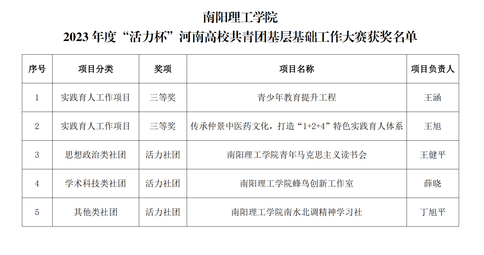 本网讯(学生记者/陈阳)近日,共青团河南省委公布了2023年度“活力杯”河南高校共青团基层基础工作大赛获奖名单。我校共有5项作品获奖,其中实践育人工作项目大赛三等奖2项,3个社团荣获“活力社团”称号,校团委荣获“优秀组织奖”。