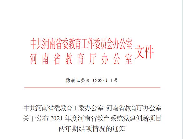 本网讯(特约记者/陈鹏)近日,中共河南省委教育工委办公室、河南省教育厅办公室下发《关于公布2021年度河南省教育系统党建创新项目两年期结项情况的通知》,我校马克思主义学院党总支书记彭民工主持的《新媒体视域下高校学生党建工作创新研究》、智能制造学院党委书记万战争主持的《立德树人视域下高校党建与业务双融双促的实践与探索》、土木工程学院党委副书记冯博主持的《高校学生党支部高质量建设研究》3个党建创新项目顺利通过结项验收并喜获二等奖。