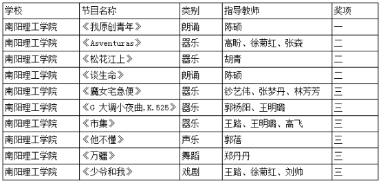 本网讯(特约记者/王路)近日,河南省第七届大学生艺术展演活动落下帷幕。经组委会评审,我校师生在此次展演活动中荣获佳绩,荣获一等奖3项、二等奖10项、三等奖11项,3幅摄影作品分获校长风采奖和优秀作品奖。