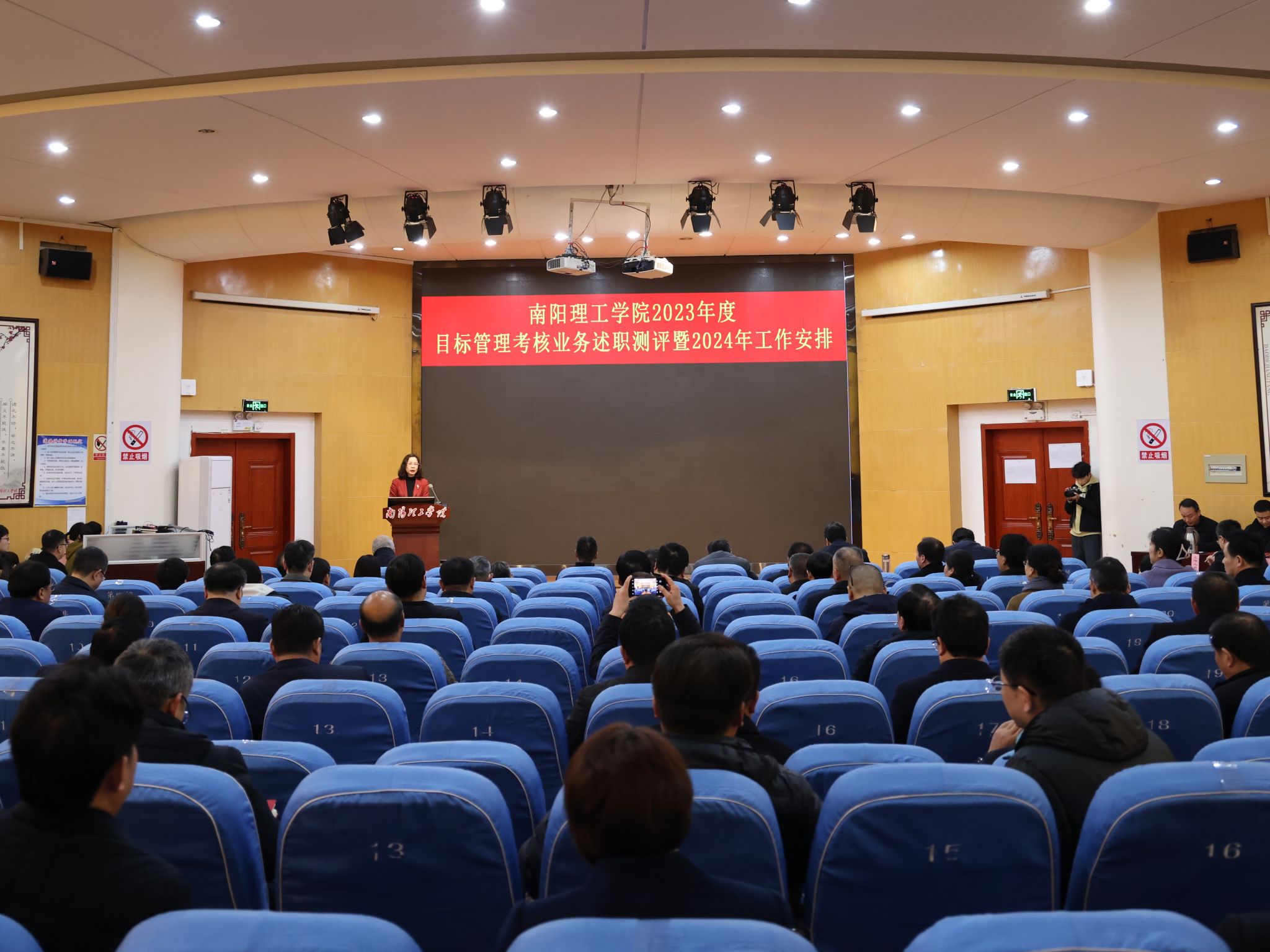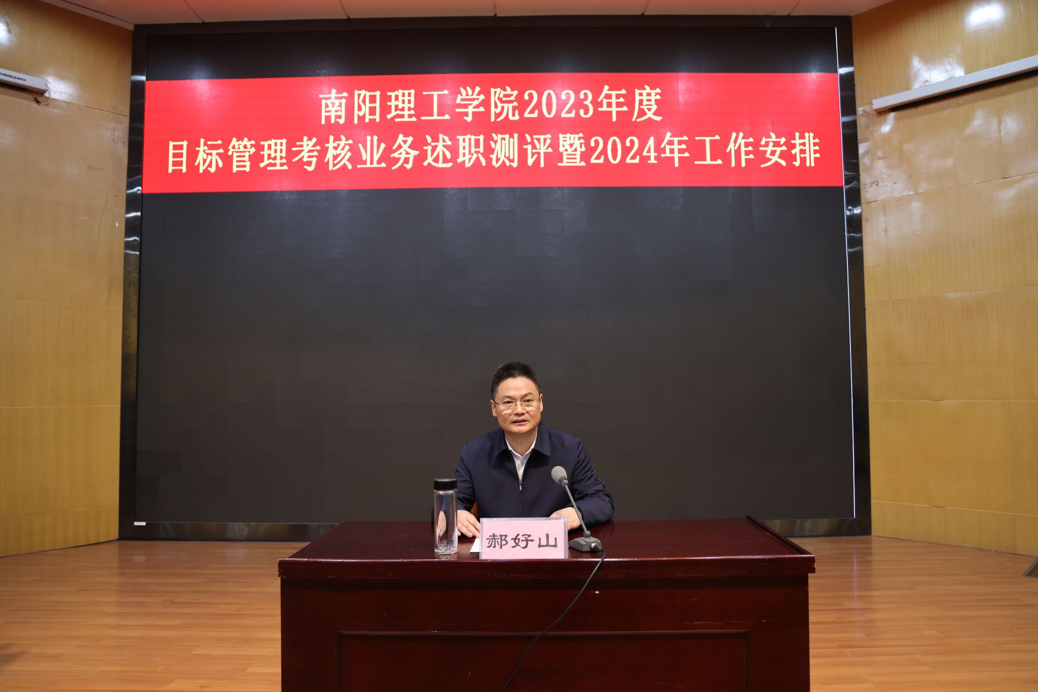 本网讯(特约记者/杨鹏越)3月8日,我校2023年度目标管理业务工作述职测评暨2024年工作安排会在领创空间二楼报告厅召开,校领导安士伟、郝好山、张爱红、董豪、张世海、葛晨光、蔡广宇、高芳放、常军乾出席会议,全体中层正职、主持工作副职参加会议,其他中层副职列席会议。会议由党委副书记张爱红主持。