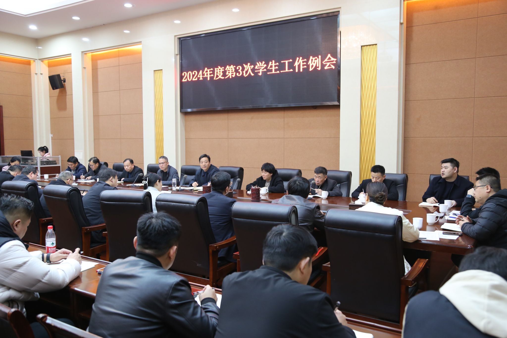 本网讯(特约记者/张启鑫)3月13日下午,校党委副书记、工会主席董豪主持召开我校2024年度第3次学生工作例会。学生处、团委、心理健康教育中心、保卫处、后勤服务中心、校医院、依法治校办公室等部门主要负责人,各教学院党委副书记、学工办主任参加会议。