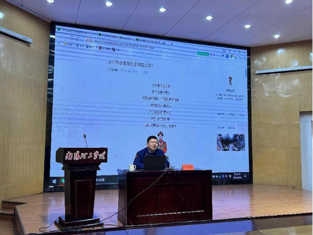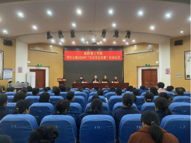 本网讯(特约记者/李骏)3月13日下午,我校在学校第二报告厅举办学生公寓“百日安全竞赛”启动仪式。会议邀请南阳市宛城区消防救援大队副队长马跃锋作消防安全知识培训。后勤服务中心、保卫处相关人员以及同学代表共百余人参加会议。