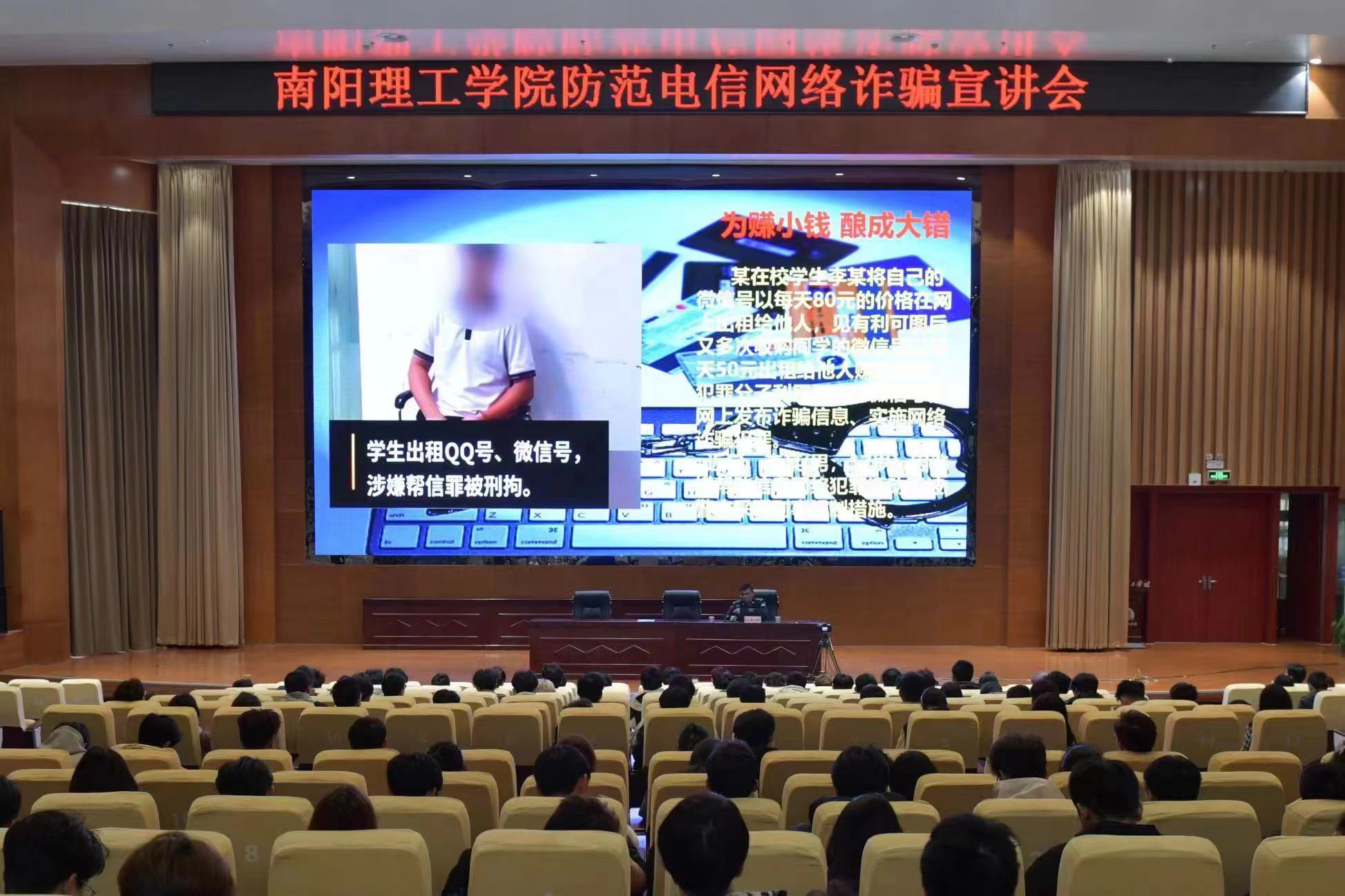 宣讲会邀请南阳市公安局反诈中心警官白松岩,围绕“网络兼职刷单诈骗、冒充客服诈骗、冒充熟人诈骗、买卖游戏账号诈骗”等方面为同学们作讲解。