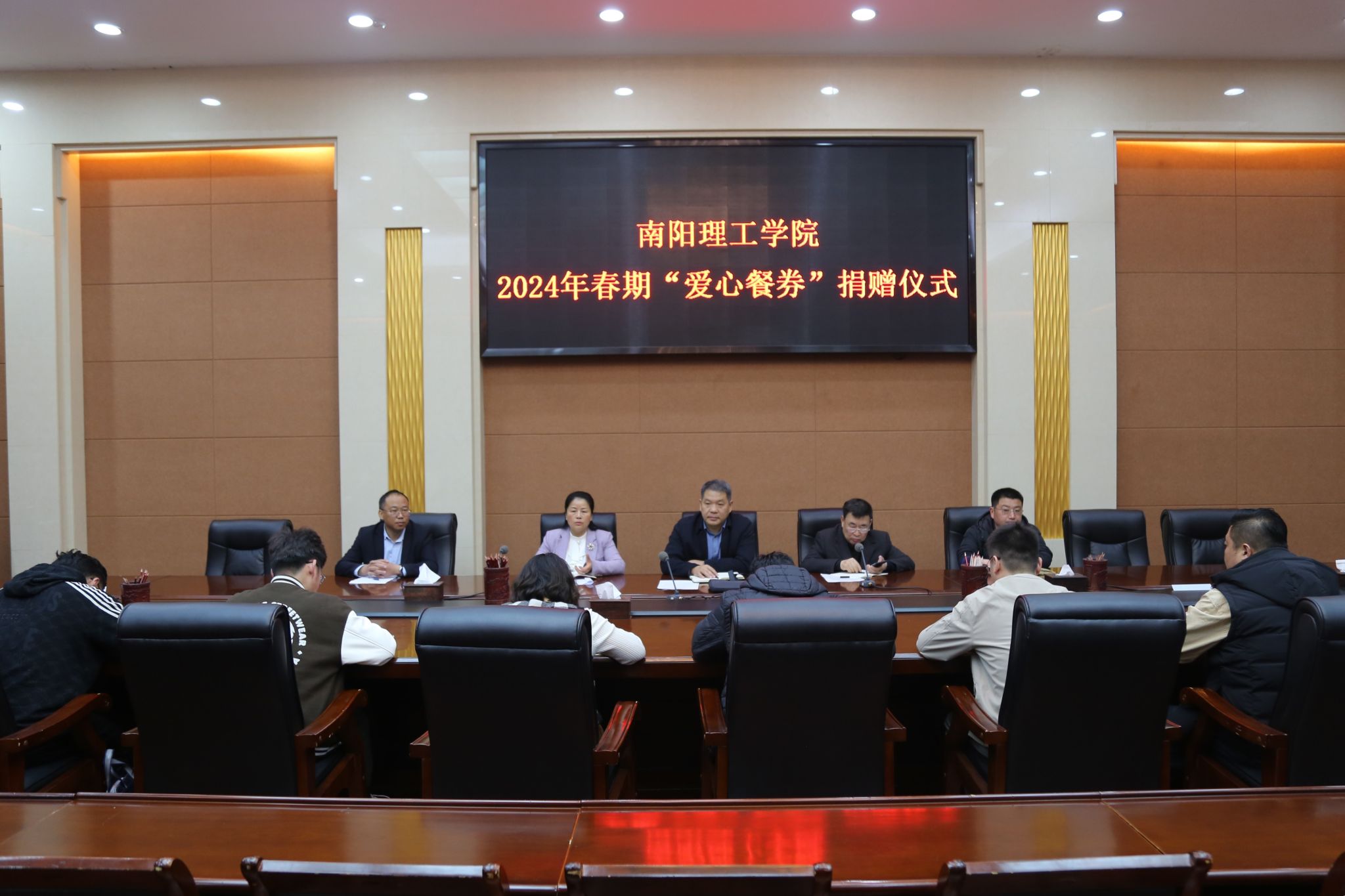 本网讯(特约记者/张启鑫)3月28日上午,河南味邦餐饮管理服务有限公司向学校捐赠2万元的“爱心餐券”,捐赠仪式在校会议中心举行。后勤服务中心、学生资助管理中心、河南味邦餐饮管理服务有限公司主要负责人,各教学院学工办主任参加仪式。