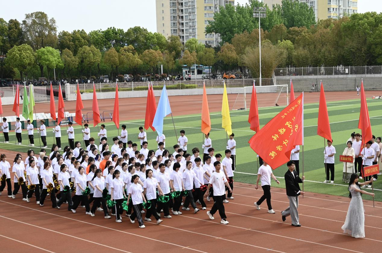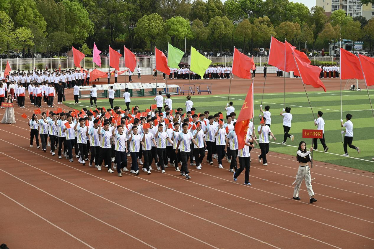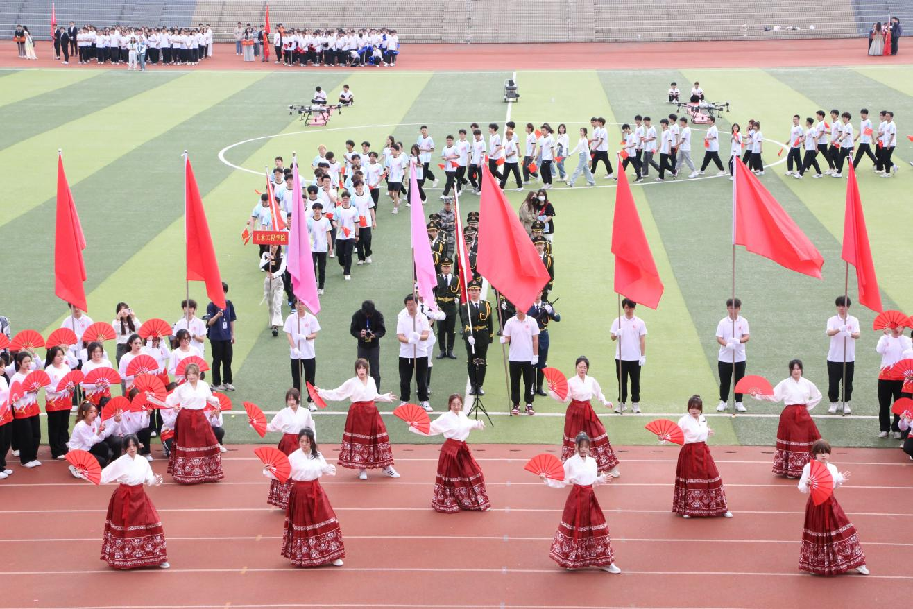 本网讯(记者/鲁静薇)4月10日上午,我校举行第二十八届田径运动会开幕式。17个方阵的1200余名师生闪亮登场。他们朝气蓬勃、精神焕发;他们英姿飒爽、气宇轩昂;他们结合学院特色,用歌唱、舞蹈和表演等多种形式,展现青春风采和昂扬风貌;他们以实际行动诠释了“不甘示弱”的南工精神,精彩的表演赢得现场观众的阵阵掌声和喝彩。