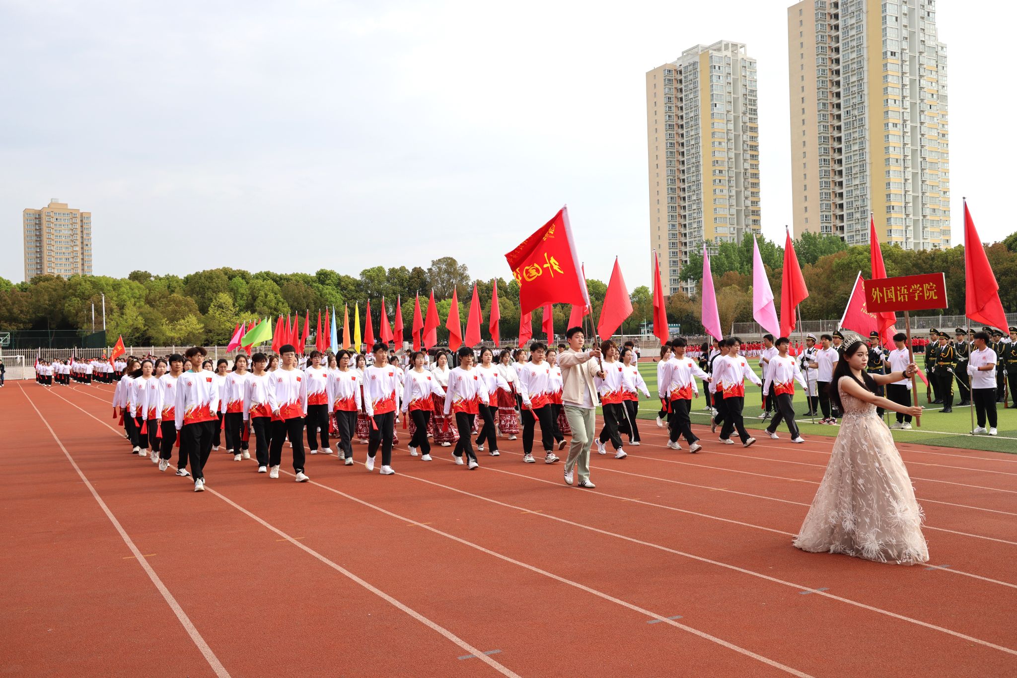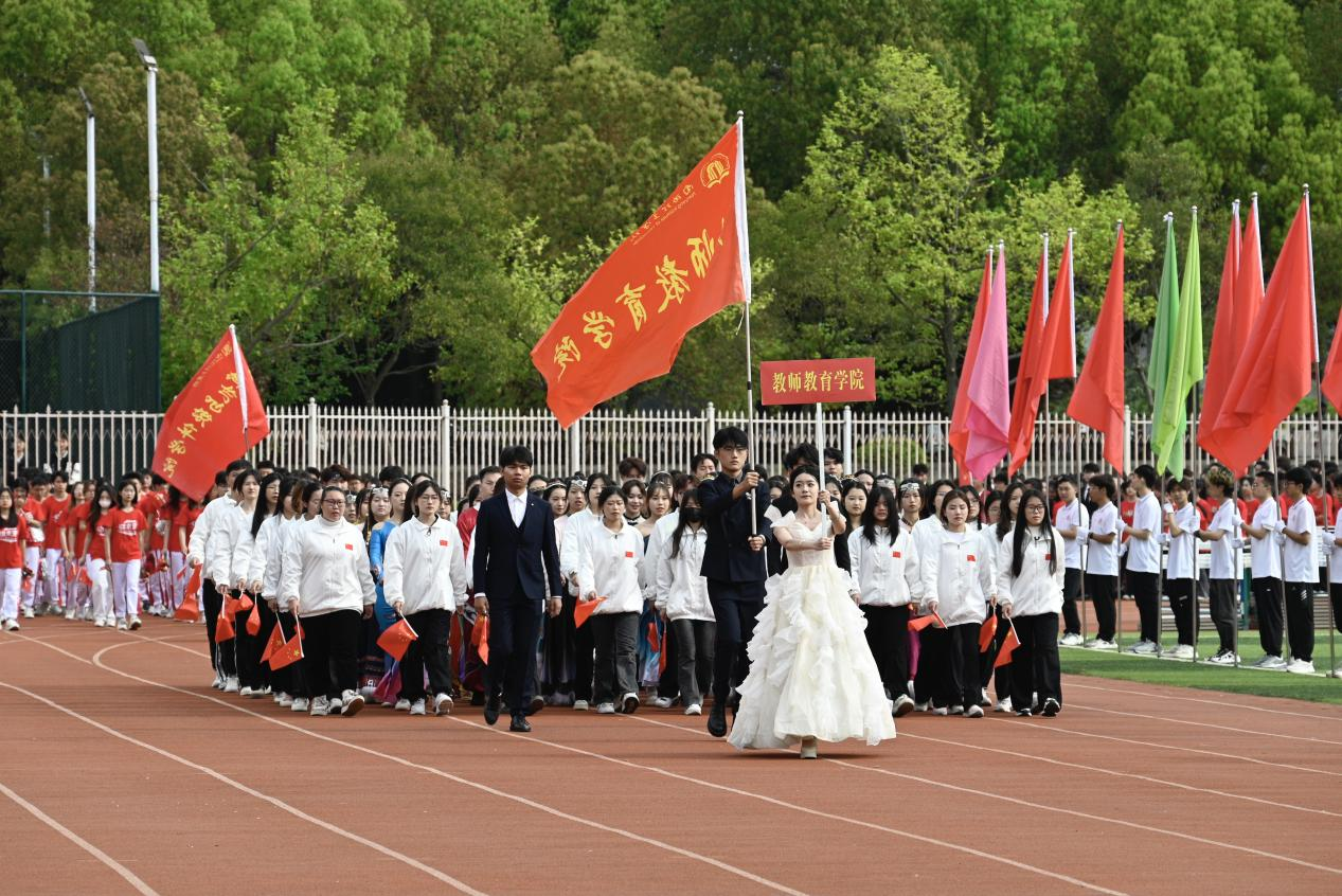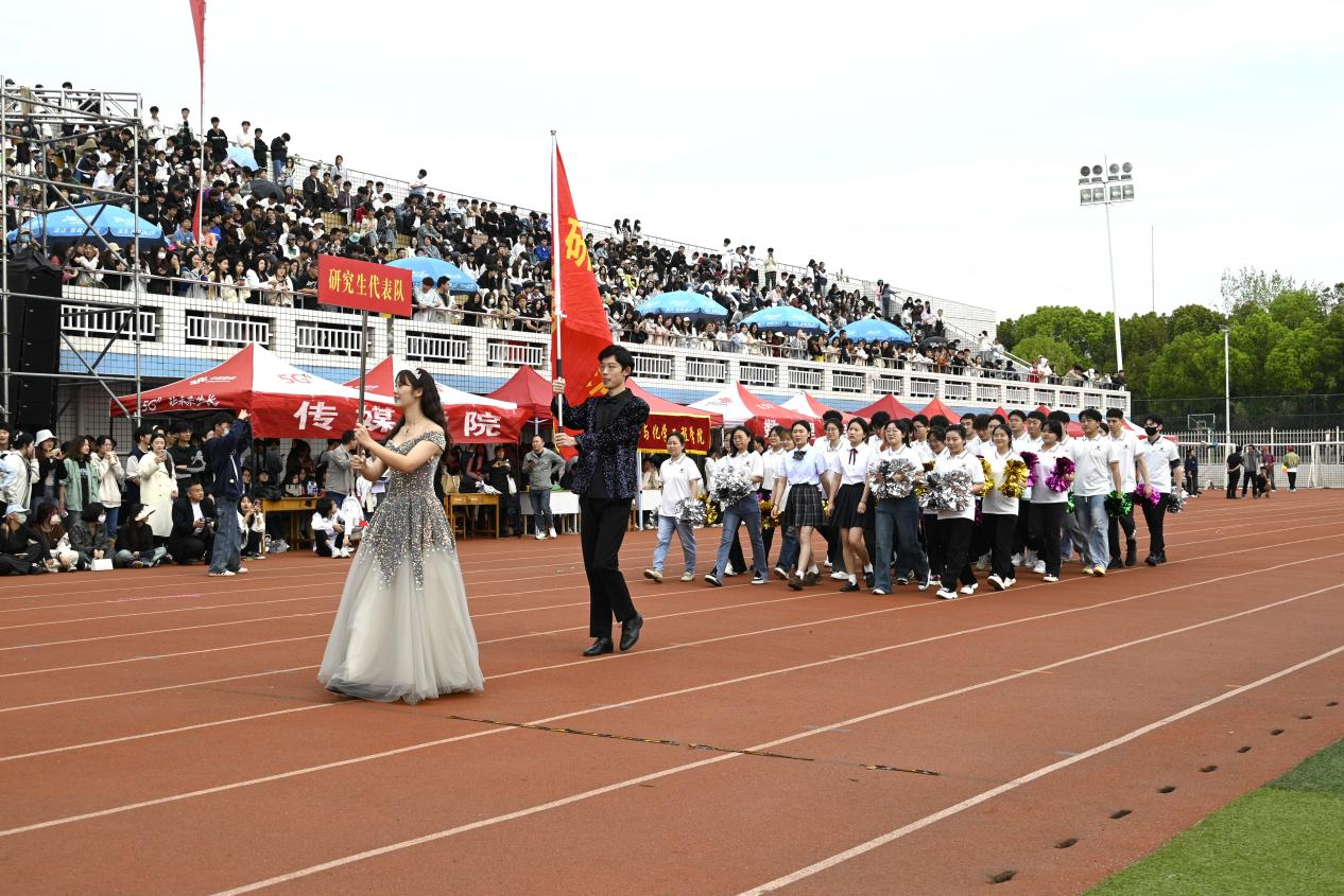 本网讯(记者/鲁静薇)4月10日上午,我校举行第二十八届田径运动会开幕式。17个方阵的1200余名师生闪亮登场。他们朝气蓬勃、精神焕发;他们英姿飒爽、气宇轩昂;他们结合学院特色,用歌唱、舞蹈和表演等多种形式,展现青春风采和昂扬风貌;他们以实际行动诠释了“不甘示弱”的南工精神,精彩的表演赢得现场观众的阵阵掌声和喝彩。