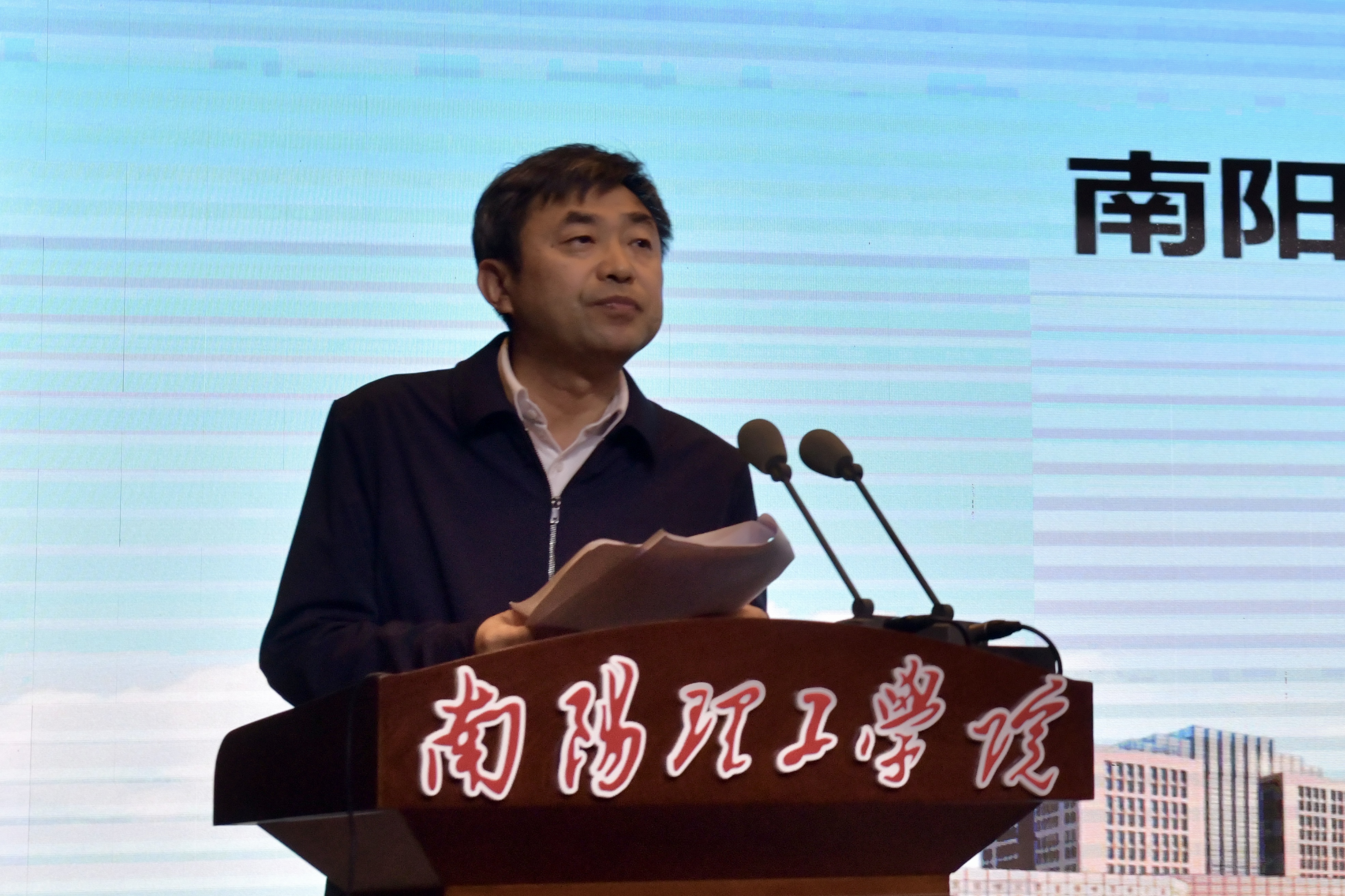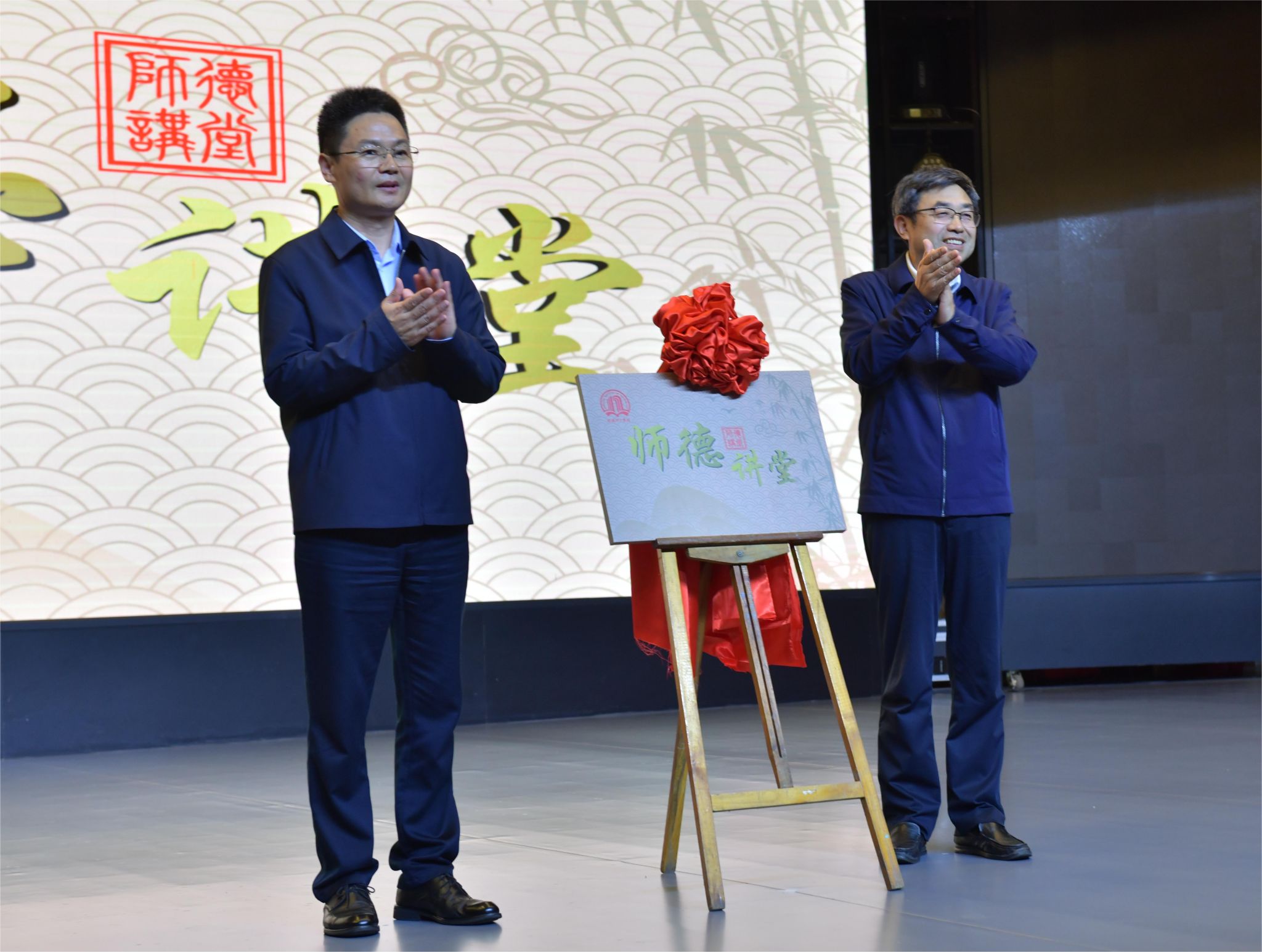 活动开始前,安士伟、郝好山共同为南阳理工学院“师德讲堂”揭牌。