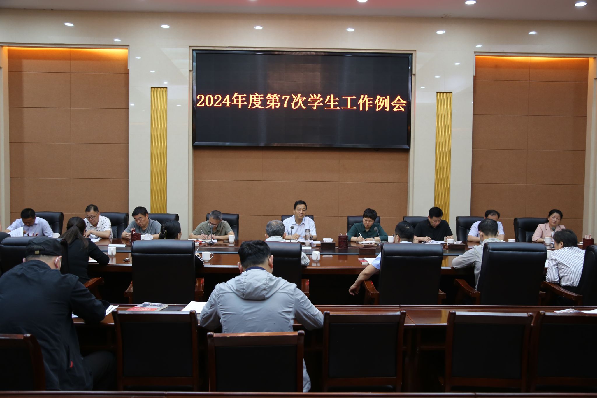 本网讯(特约记者/张启鑫)5月15日上午,校党委副书记、工会主席董豪主持召开我校2024年度第7次学生工作例会。学生处、团委、心理健康教育中心、保卫处、后勤服务中心、校医院、依法治校办公室等部门主要负责人,各教学院党委副书记、学工办主任参加会议。