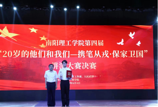 本网讯(特约记者/张露 学生记者/徐于航)响应号召入军营,报效祖国正当时。6月4日晚,南阳理工学院第四届“20岁的他们和我们—携笔从戎·保家卫国”讲演大赛决赛在毕业大厅举办。校党委书记安士伟,党委副书记、工会主席董豪,副校长高芳放,党委宣传部、党委统战部,党委学生工作部、人民武装部及部分学院主要负责同志出席活动。