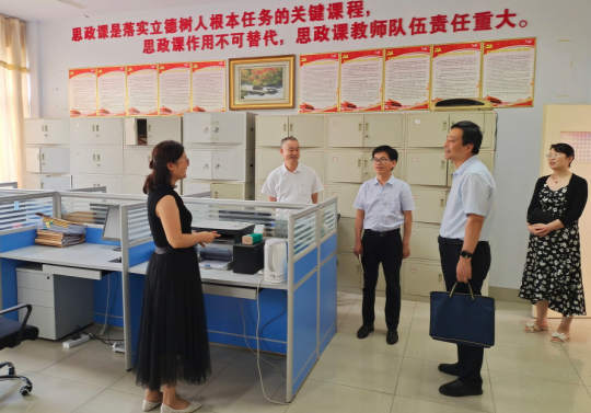 在马克思主义学院,董豪详细察看学院办公条件、文化建设和氛围营造情况,深入教研室看望慰问思政课教师,悉心了解教师们关注的热点问题。