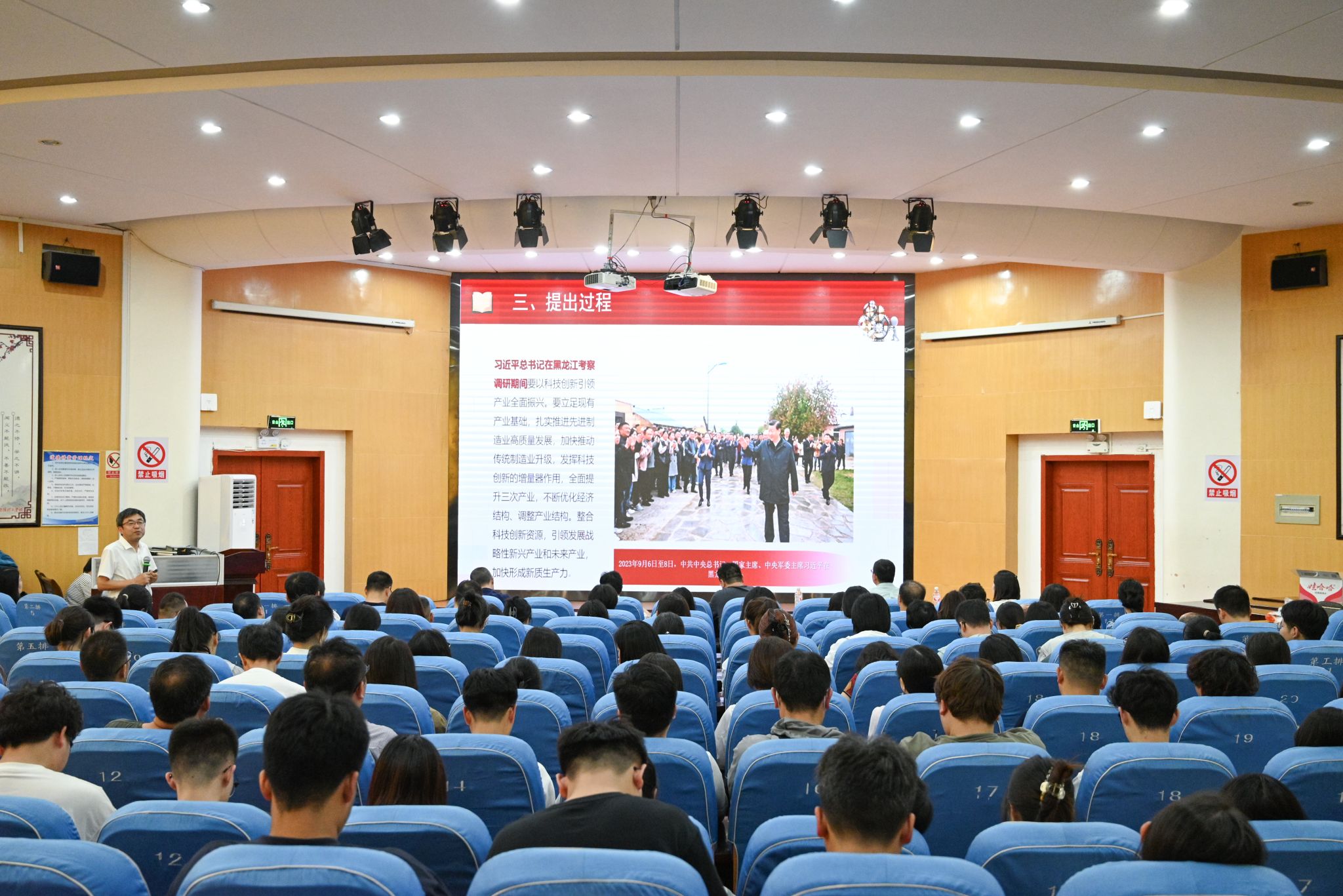 本网讯(特约记者/王健平)6月14日下午,校党委书记安士伟以“新质生产力的本质及内涵”为主题讲授专题思政课,范蠡商学院全体师生党员参加学习。