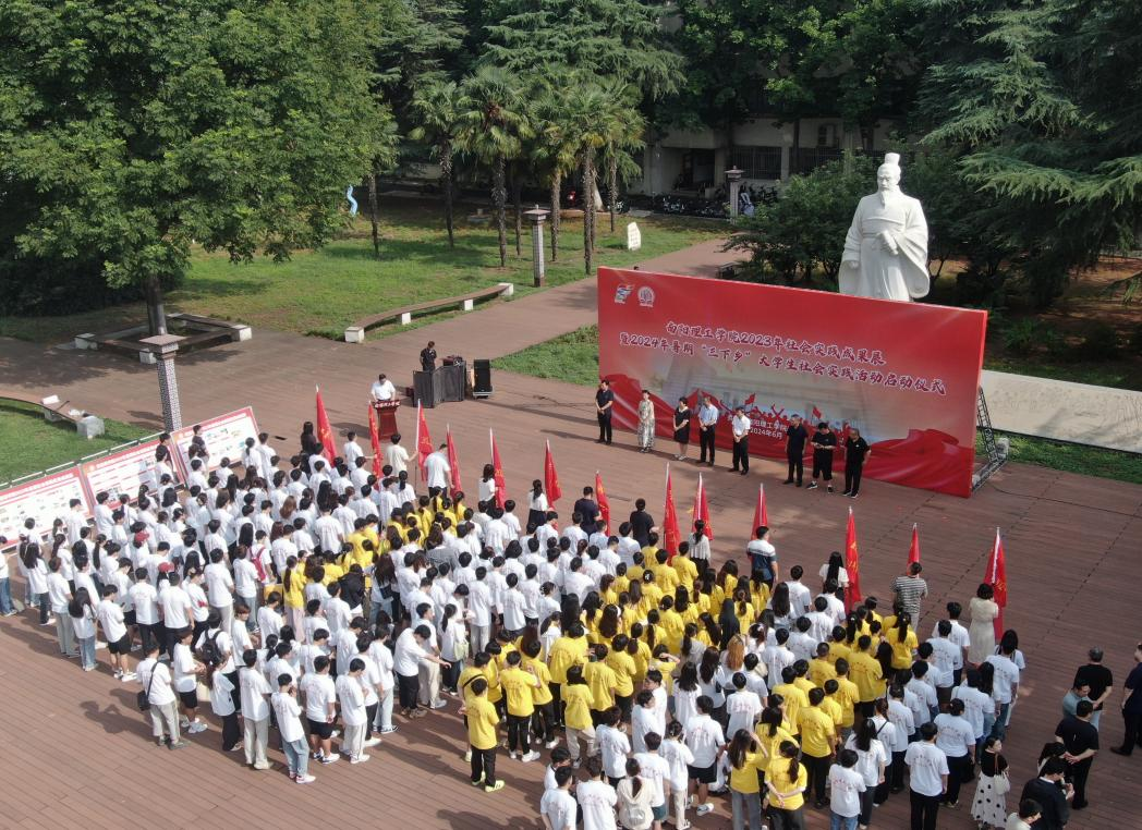 本网讯(特约记者/廖伟迪)6月26日,我校2023年社会实践成果展暨2024年大学生暑期“三下乡”社会实践活动出征仪式在范蠡广场举行。校党委书记安士伟,校党委副书记、工会主席董豪出席,党委宣传部、党委统战部、学生处、心理健康教育中心主要负责人,各教学院相关负责人、团委书记及学生代表参加启动仪式,校团委负责同志主持仪式。