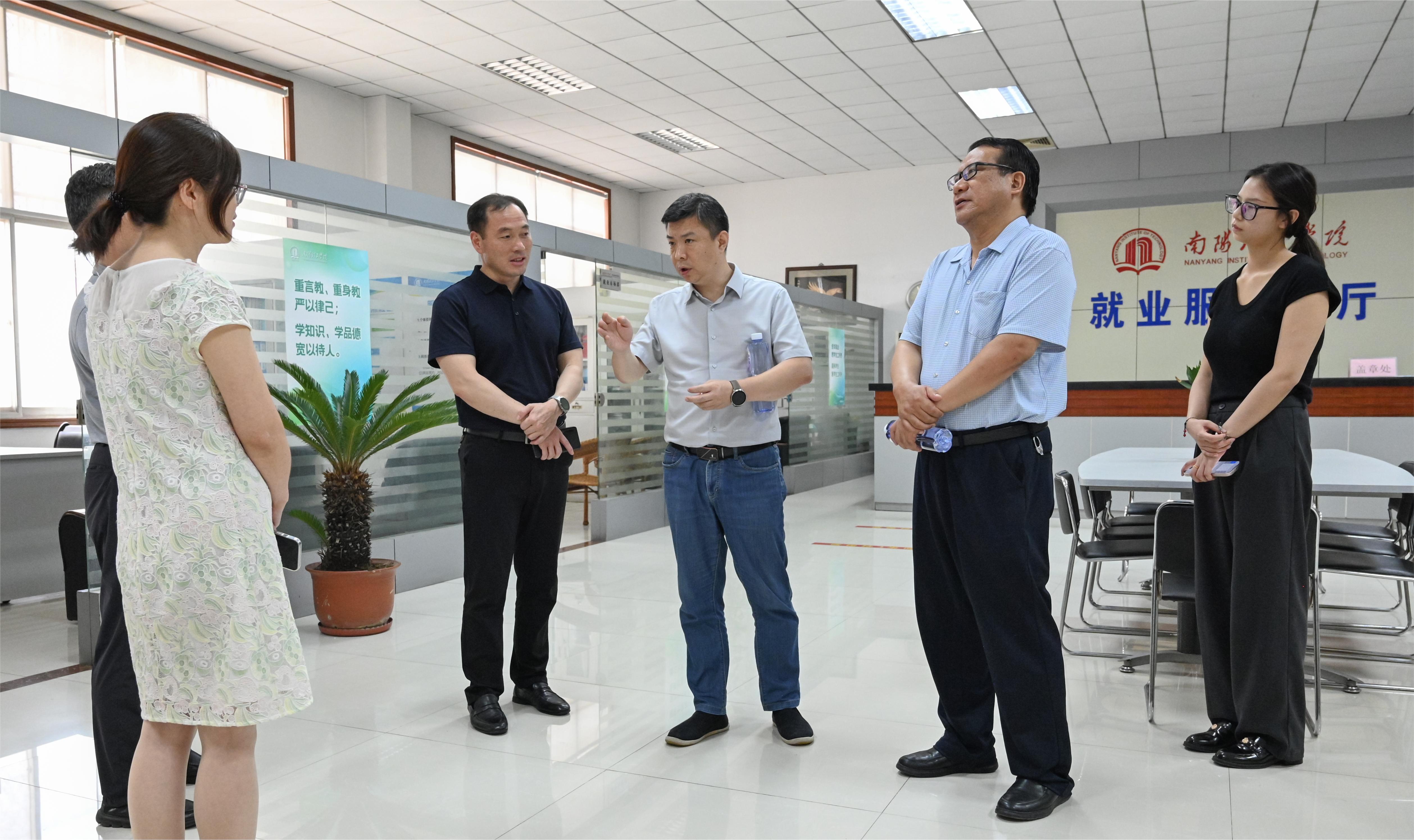本网讯 (特约记者/陈永州)6月27日,河南省教育厅学生处处长李班,河南省大中专学生就业服务中心主任魏鑫一行来校调研指导就业工作,副校长葛晨光、招生就业处负责人及相关工作人员陪同调研。