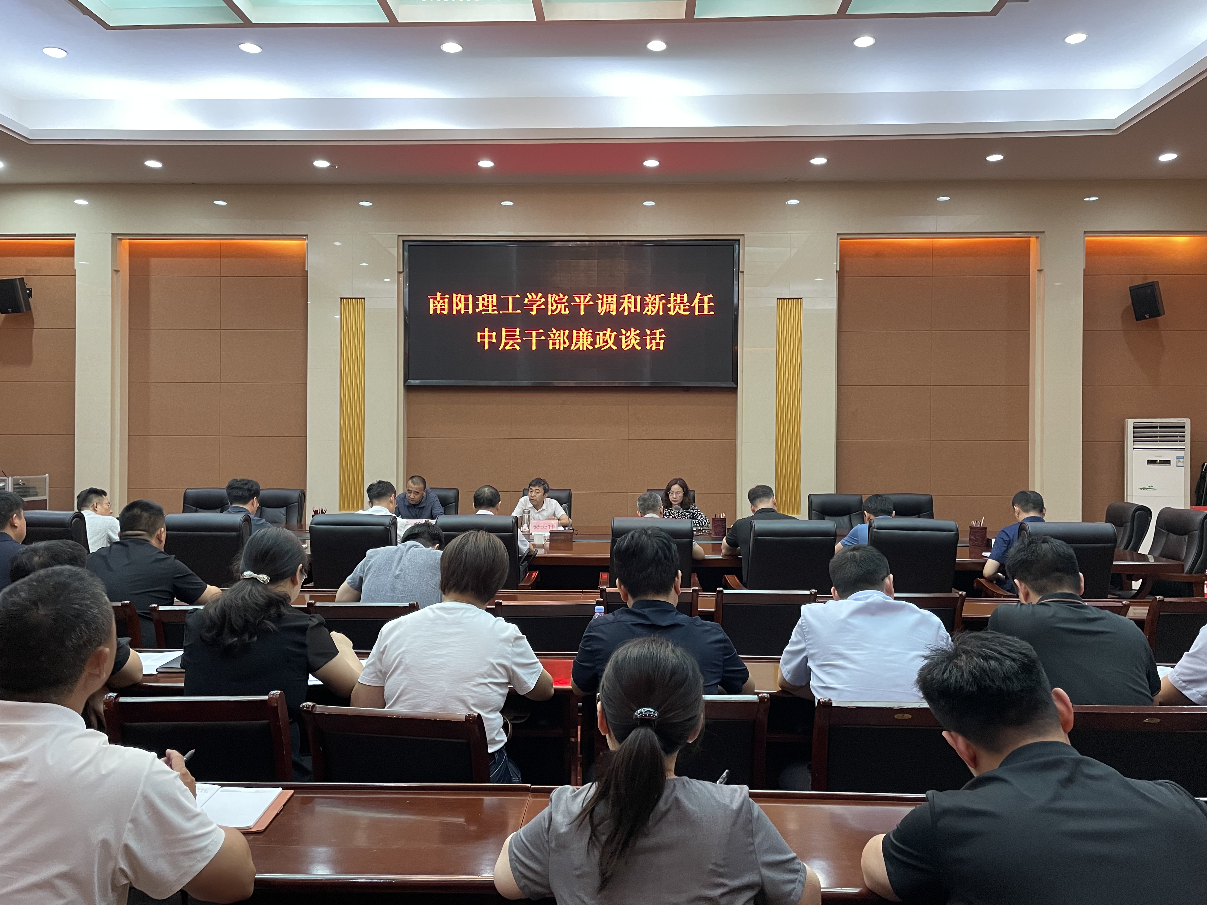 本网讯(特约记者/冯旺)6月7日下午,南阳理工学院中层干部任职廉政谈话会在会议中心召开,校党委书记安士伟出席,会议由校党委副书记张爱红主持。党委组织部、纪委负责同志,2024年平调和提拔的中层干部参加会议。