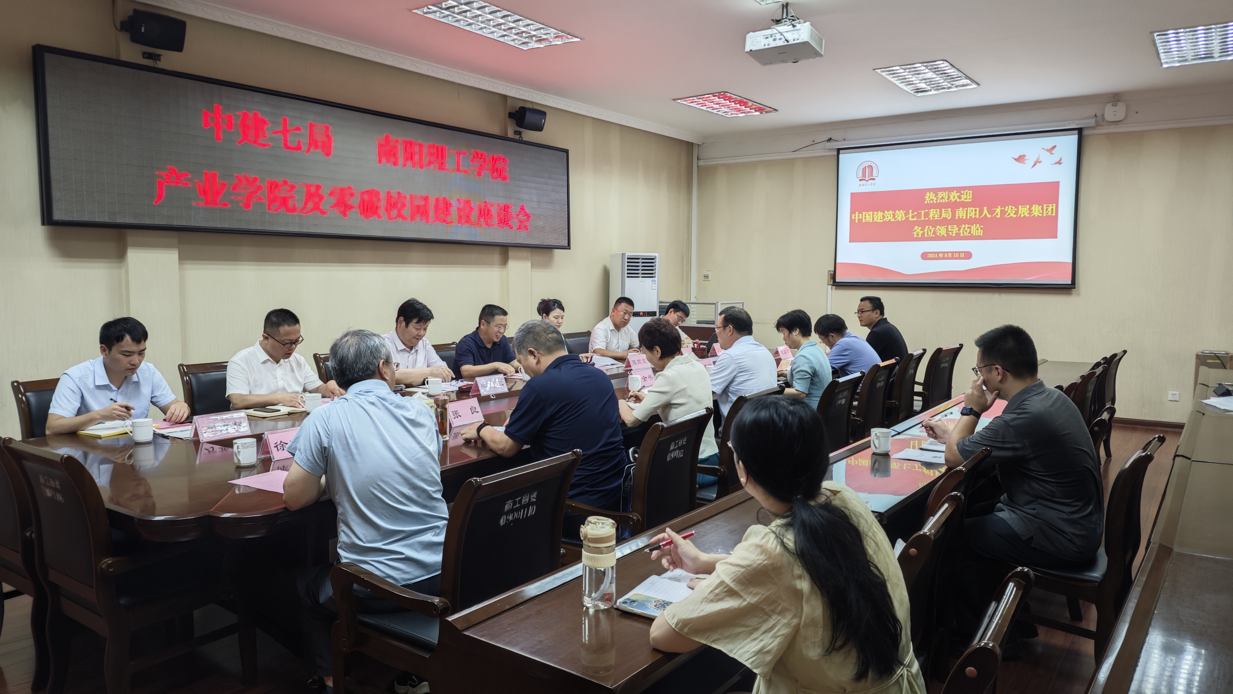 本网讯(特约记者/林翔)8月10日上午,我校召开产业学院及零碳校园建设座谈会,中国建筑第七工程局副总经理鲍宗平、南阳人才发展集团总经理冯军等一行7人来校参加座谈会。副校长黄金书主持会议,发展规划处、后勤服务中心、土木工程学院负责人参加。