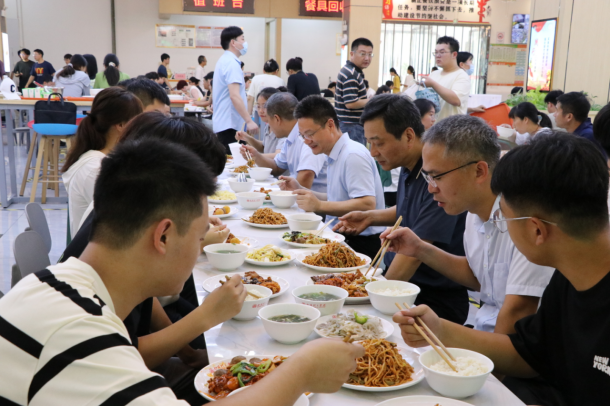 本网讯(记者/贾小真)为进一步加强我校食品安全日常管理,持续提升餐饮服务水平,9月8日中午,校长郝好山深入学苑餐厅,与学生共进午餐。党委副书记、工会主席董豪,学生处、后勤服务中心相关负责人陪同。