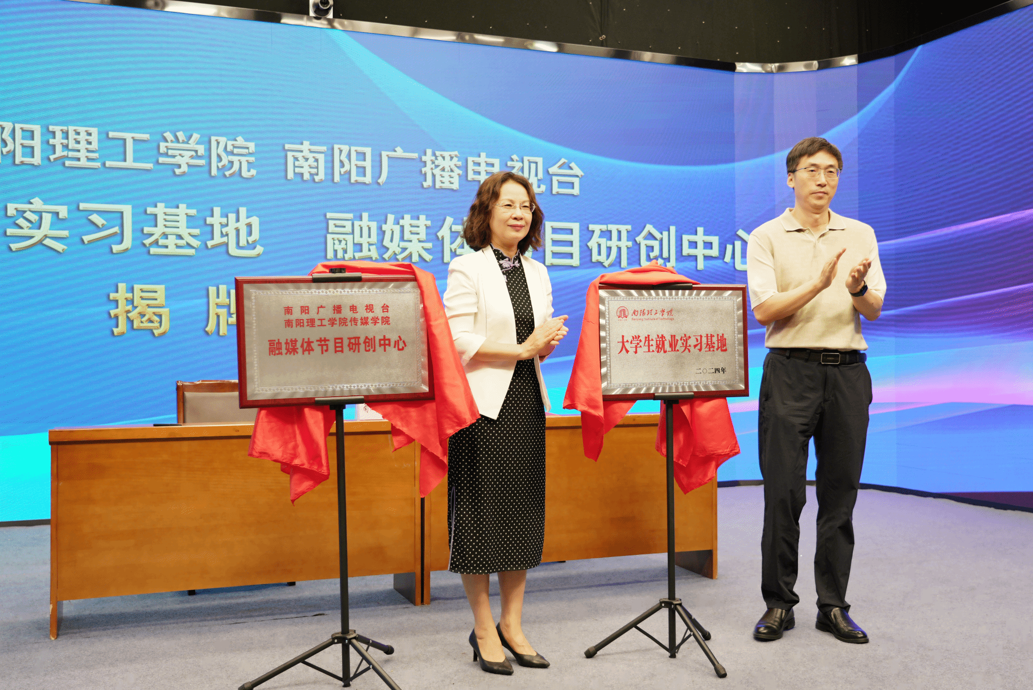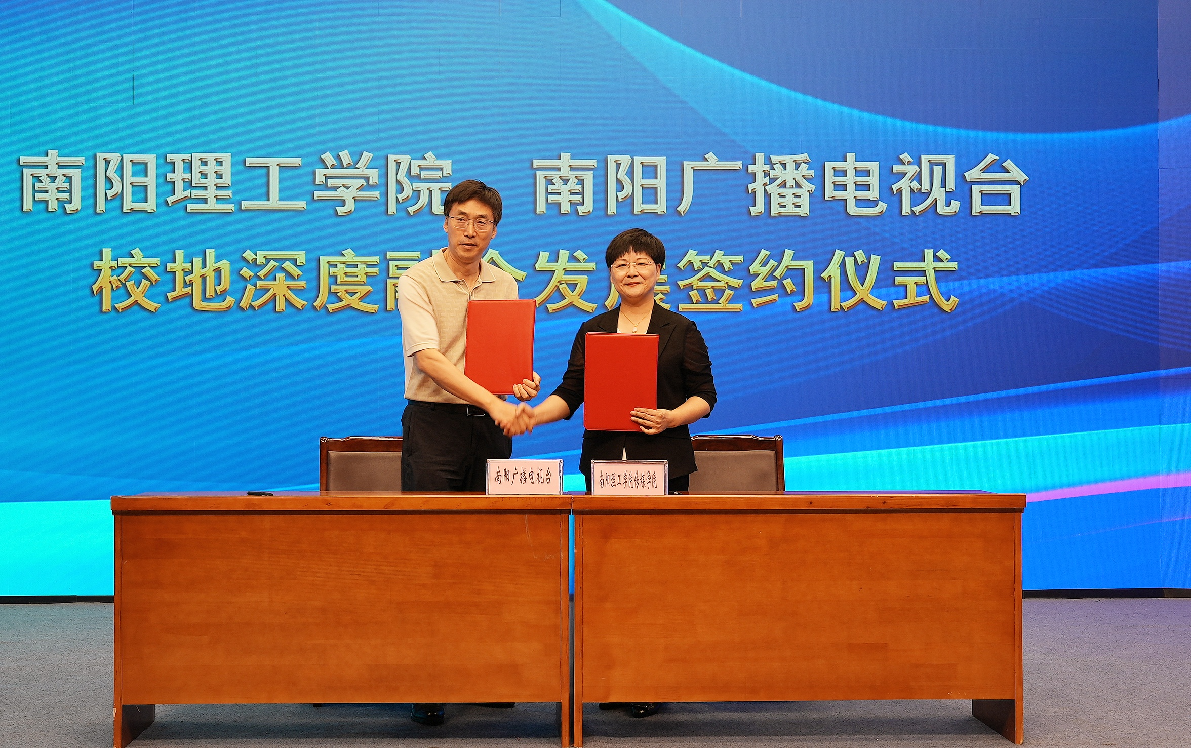 双方还举行校地深度融合合作协议签约仪式、南阳理工学院大学生就业实习基地和融媒体节目研创中心揭牌仪式、传媒学院业界导师聘任仪式等活动。