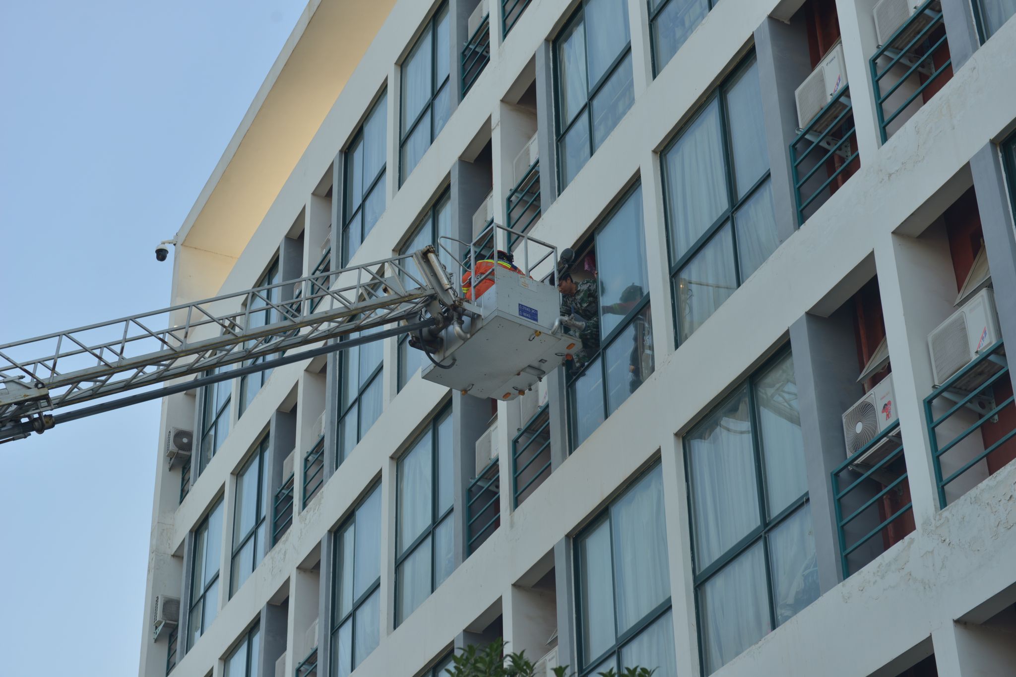 讲座结束后,学校组织学生观摩由消防救援支队开展的高空救援和消防紧急疏散演练,为学生科普防火安全知识,提升学生防火及自救能力。(摄影记者/沈轩一 郭婷 校对/殷旭炎 审核/何云亭)