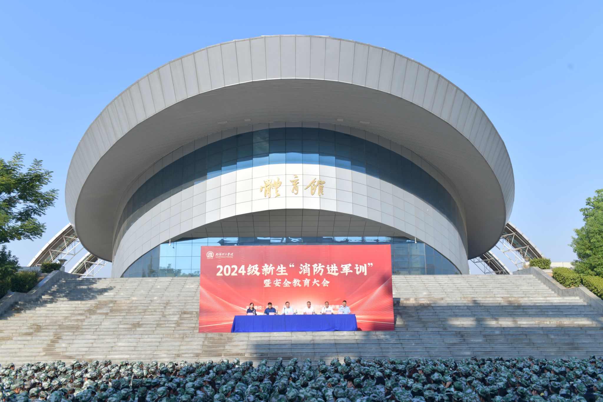 本网讯(特约记者/张元朝 刘涛)9月25日上午,我校在东南校区体育馆前举办2024级新生安全教育第一课——“消防进军训”暨安全教育大会。副校长黄金书,党委学生工作部、党委保卫工作部、校团委负责同志,南阳市公安局城乡一体化示范区公安分局枣林派出所、南阳市消防救援支队防火监督科相关负责人出席活动,2024级近5000余名新生及新生辅导员和60名军训教官参加活动。