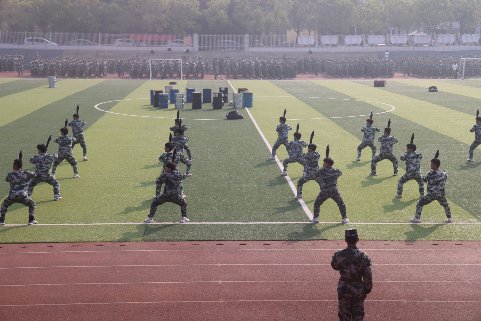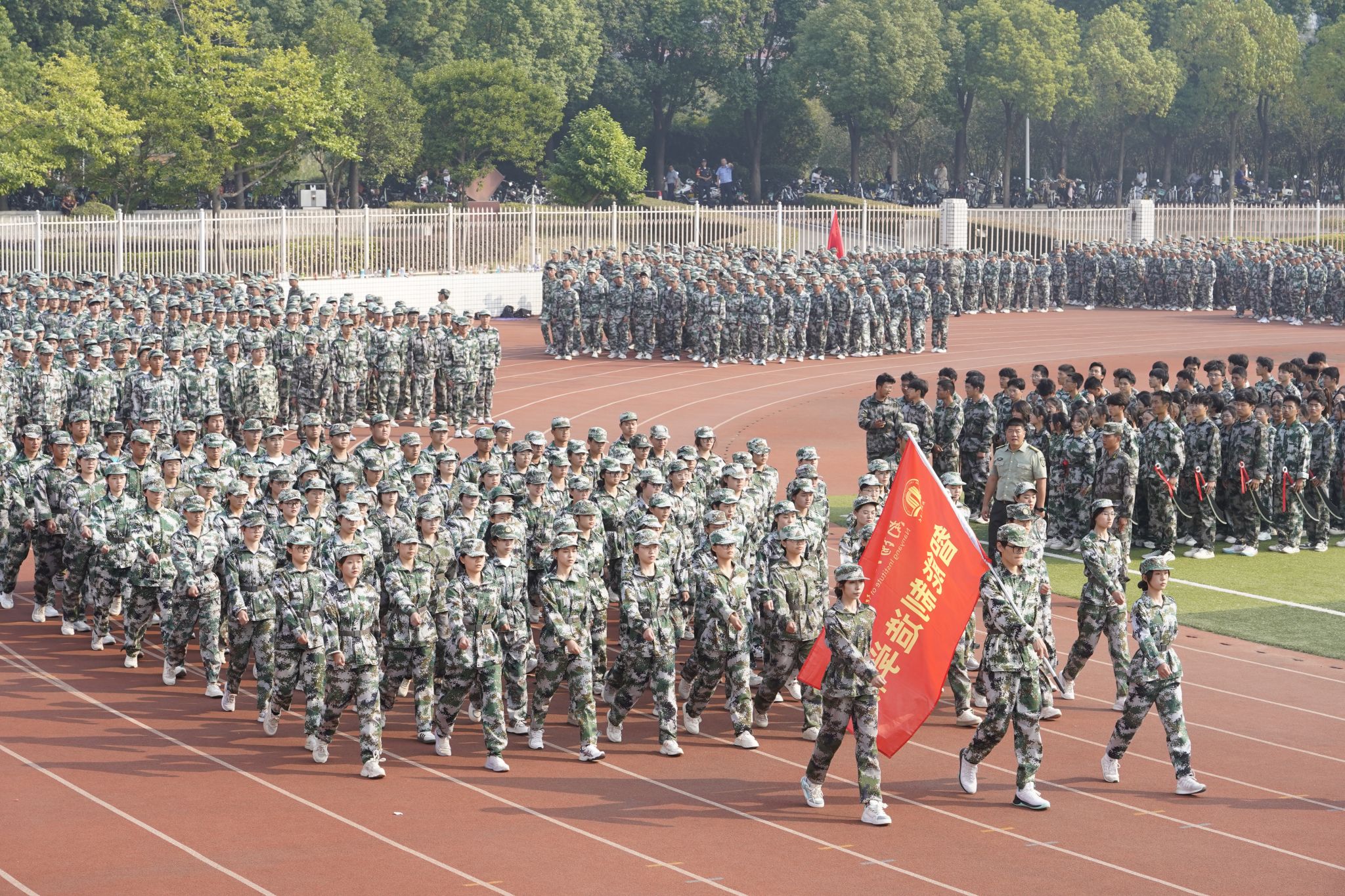 上午9时,开学典礼暨军训汇报表演在庄严的国歌声中拉开帷幕。