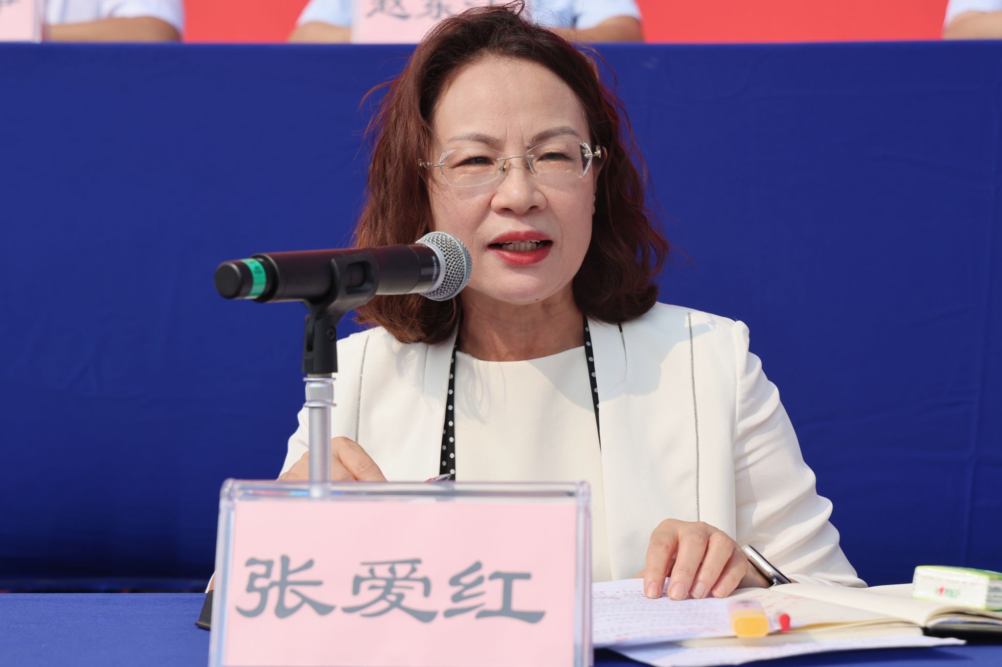 校党委副书记张爱红对获得表彰的新生军训先进单位和个人表示祝贺,希望同学们以理想信念为舵,以专业学习为帆,以实干奋斗为桨,脚踏实地,仰望星空,努力成为有理想、有本领、有担当的时代新人。