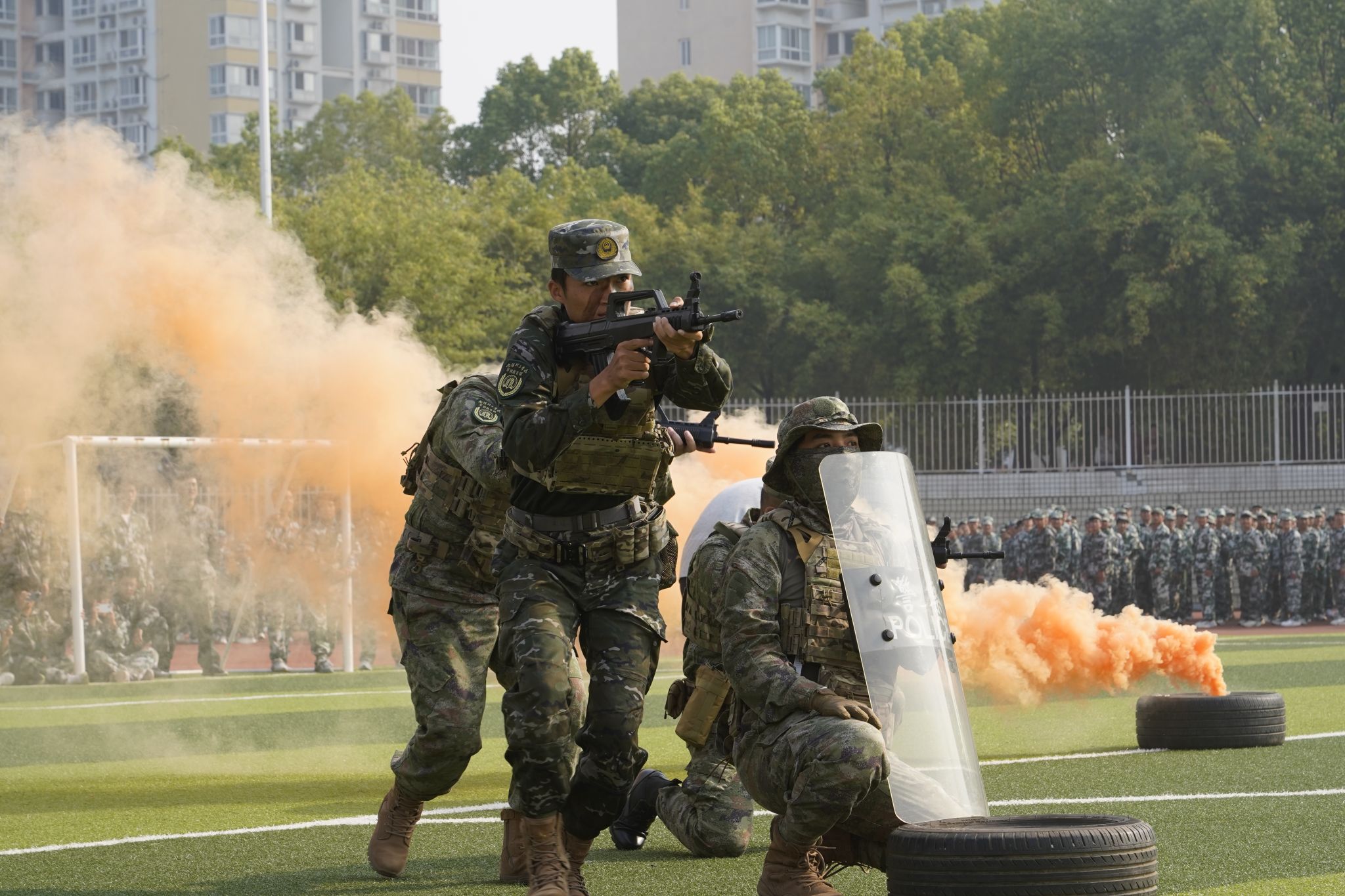 全场合唱国歌后,55个连队在国旗护卫队引领下,伴着庄重威严的解放军进行曲依次接受检阅。2024级学子们英姿飒爽的身姿、坚毅果敢的眼神、干脆利落的动作和气势恢宏的列队行进,无不彰显着他们作为青年学子的蓬勃朝气、坚韧不拔的军人气质。擒敌拳、匕首操、破锋八刀、战术演练等特色方阵,充分展现新时代大学生过硬的军事素养和奋发向上的精神风貌。