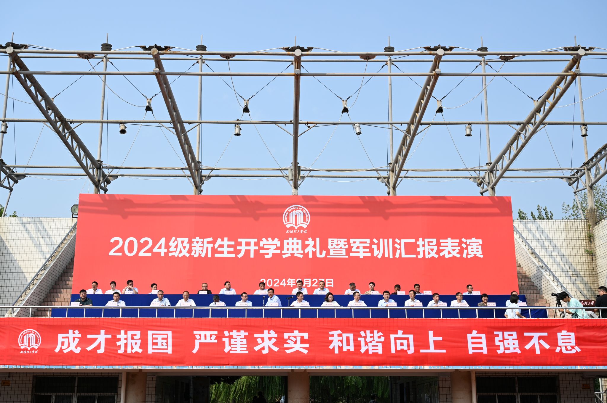 本网讯(特约记者/王文博) 9月27日上午,南阳理工学院2024级新生开学典礼暨军训汇报表演在东南校区体育场举行,校长郝好山等全体在校校领导出席,校党委副书记张爱红主持。