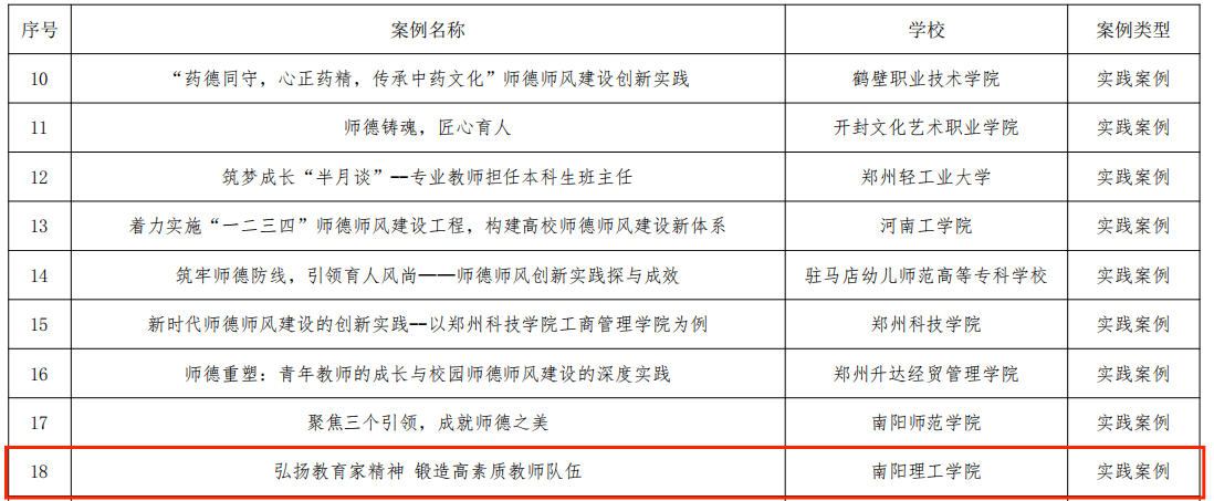 此次活动旨在广泛征集高校构建新时代师德师风创新实践和师德失范问题专项整治工作中的典型案例,全面反映学校党委落实主体责任、健全工作机制、创新工作方法、重点问题整改、规范师生关系等工作中的典型案例,通过遴选充分展示各高校在构建新时代师德师风创新实践中取得的突出成果和在师德失范问题专项整治活动中获取的宝贵经验。据悉,此次活动全省共遴选出典型案例53篇,其中典型实践案例24篇,我校成功入选充分展示近年来学校师德师风建设的典型做法和创新实践成效。