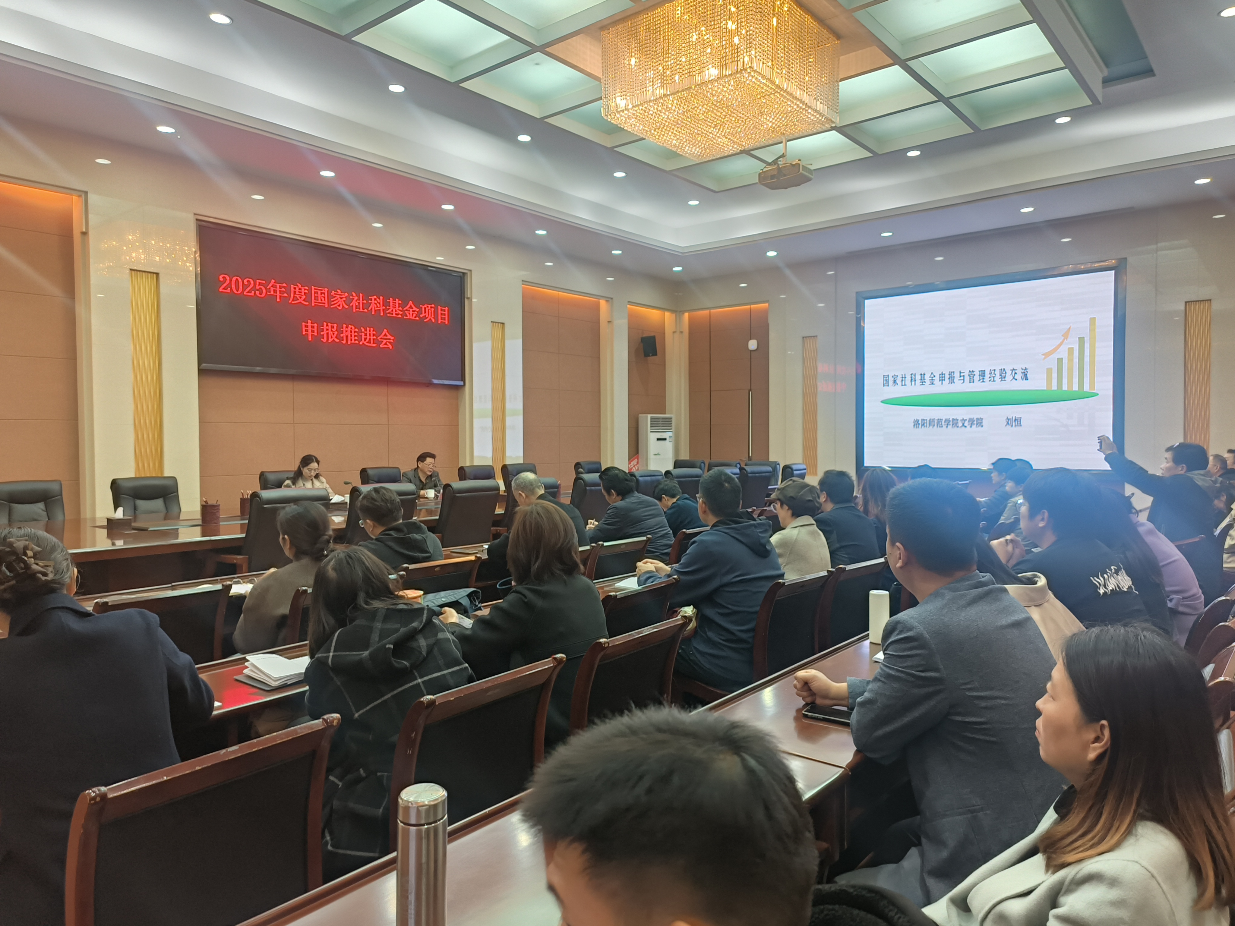 本网讯(特约记者/魏颖)11月15日下午,我校召开2025年度国家社科基金项目申报推进会,范蠡商学院、传媒学院、教师教育学院、外国语学院、数字媒体与艺术设计学院、建筑学院、马克思主义学院、体育教学部主管科研副院长(副主任)及科研骨干教师参会。洛阳师范学院文学院院长刘恒教授应邀作国家社科基金项目申报与管理经验交流报告。