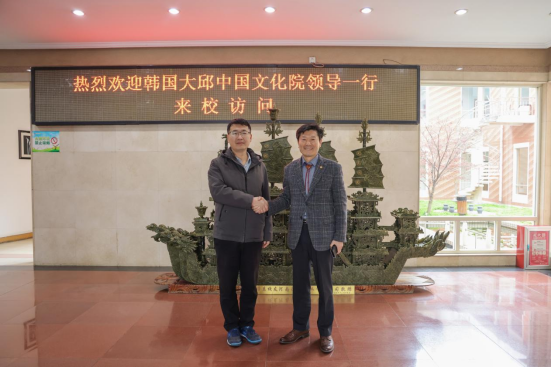 常军乾对安炅郁一行的到来表示欢迎,并介绍两校合作历史及合作办学项目发展现状。他表示,过去几年两校通过各种途径,建立了良好的文化交流基础。师生之间交流互动也取得了丰硕的成果,国际化氛围日益浓厚。下一步,希望两校深化现有合作成果,加强多领域合作。