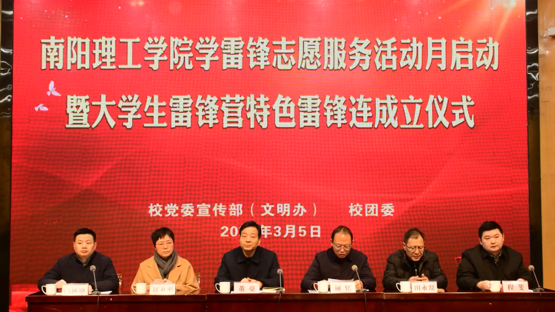 本网讯(学生记者/赵一龙)3月5日,南阳理工学院学雷锋活动月启动暨大学生雷锋营特色雷锋连成立仪式在第二报告厅举行,校党委副书记、工会主席董豪出席仪式,党委宣传部、学生处、校团委、心理健康教育中心等单位主要负责人参加仪式。各教学院团委书记、雷锋连连长、指导员及团员青年代表共260余人参加活动。