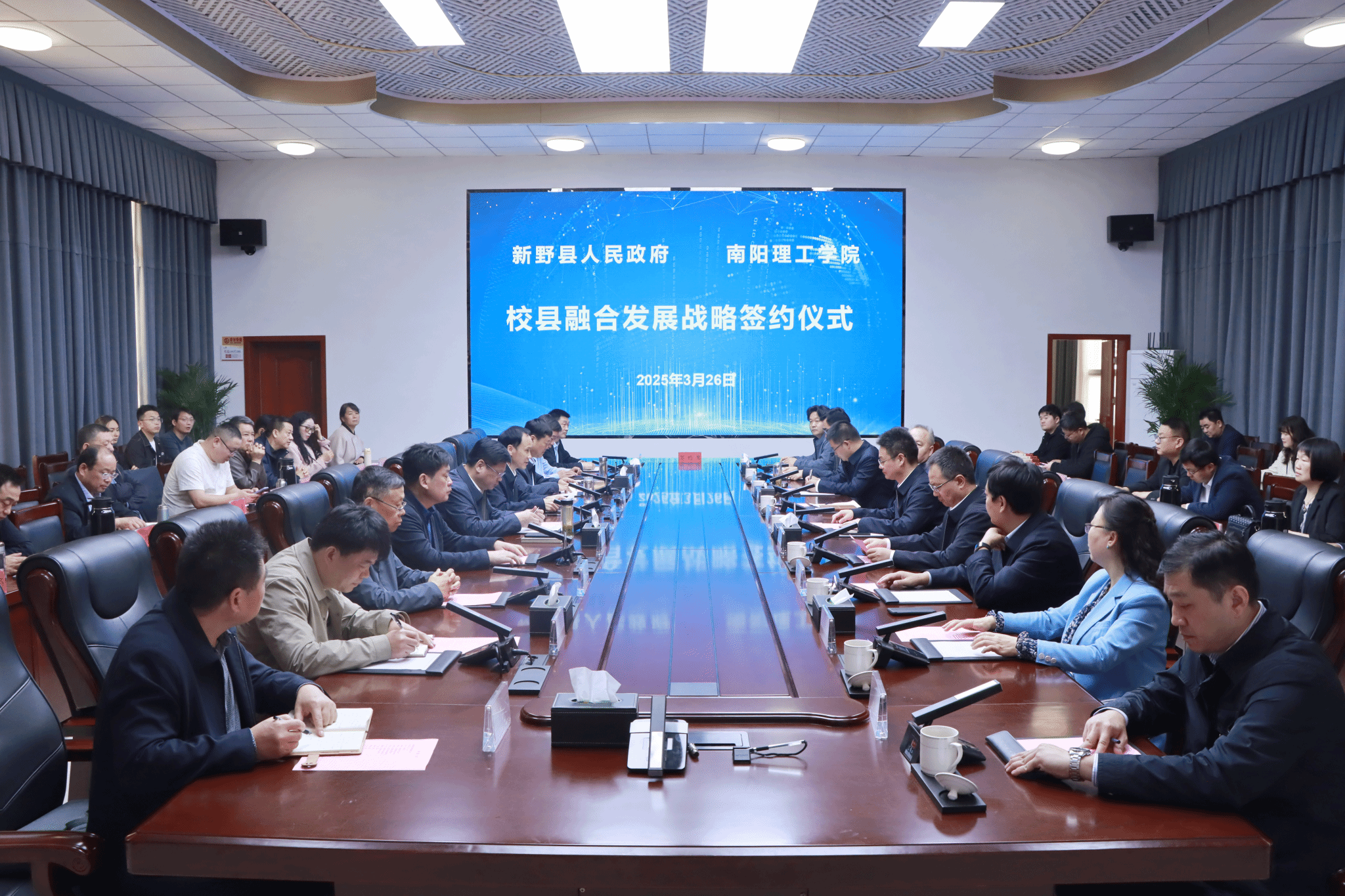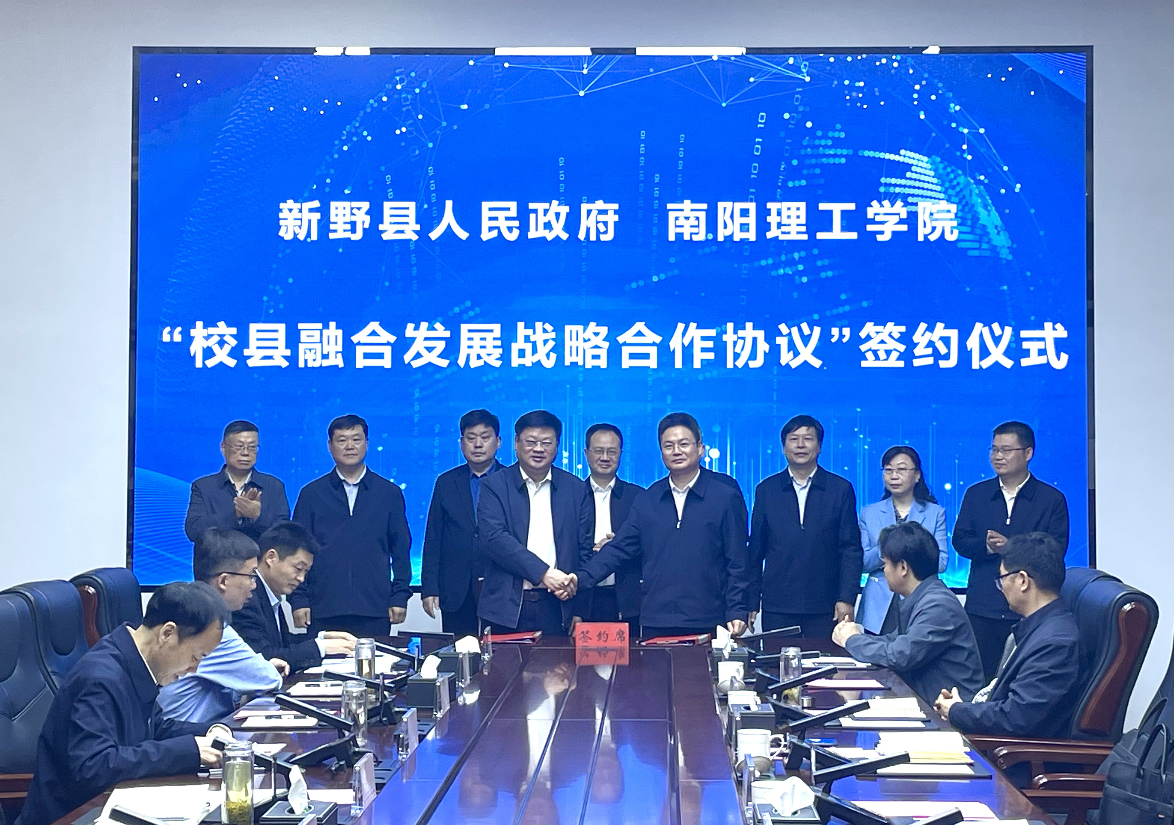 本网讯(特约记者/符浩彬 腾冰冰)3月26日上午,南阳理工学院与新野县人民政府举行“校县融合发展战略协议”签约仪式,校县双方将共建科技创新服务中心,打造技术研发、成果转化、企业孵化一体化平台,完善协同创新体系,共同推动新野县引进高端人才、集聚创新资源、优化产业结构,为区域高质量发展注入可持续动能。校长郝好山、新野县政府县长李文鹏代表校县双方签约。