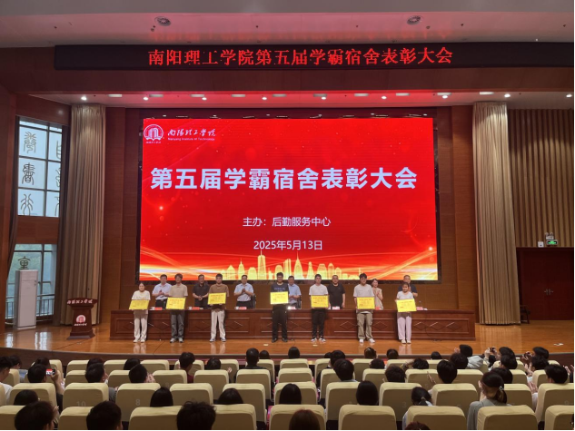 本网讯(特约记者/李骏)5月13日下午,我校在第三报告厅召开第五届“学霸宿舍”表彰大会。副校长黄金书出席,学生处、张仲景国医国药学院、土木工程学院、生物与化学工程学院、后勤服务中心等单位相关负责人,“学霸宿舍”成员及学生代表参加会议。