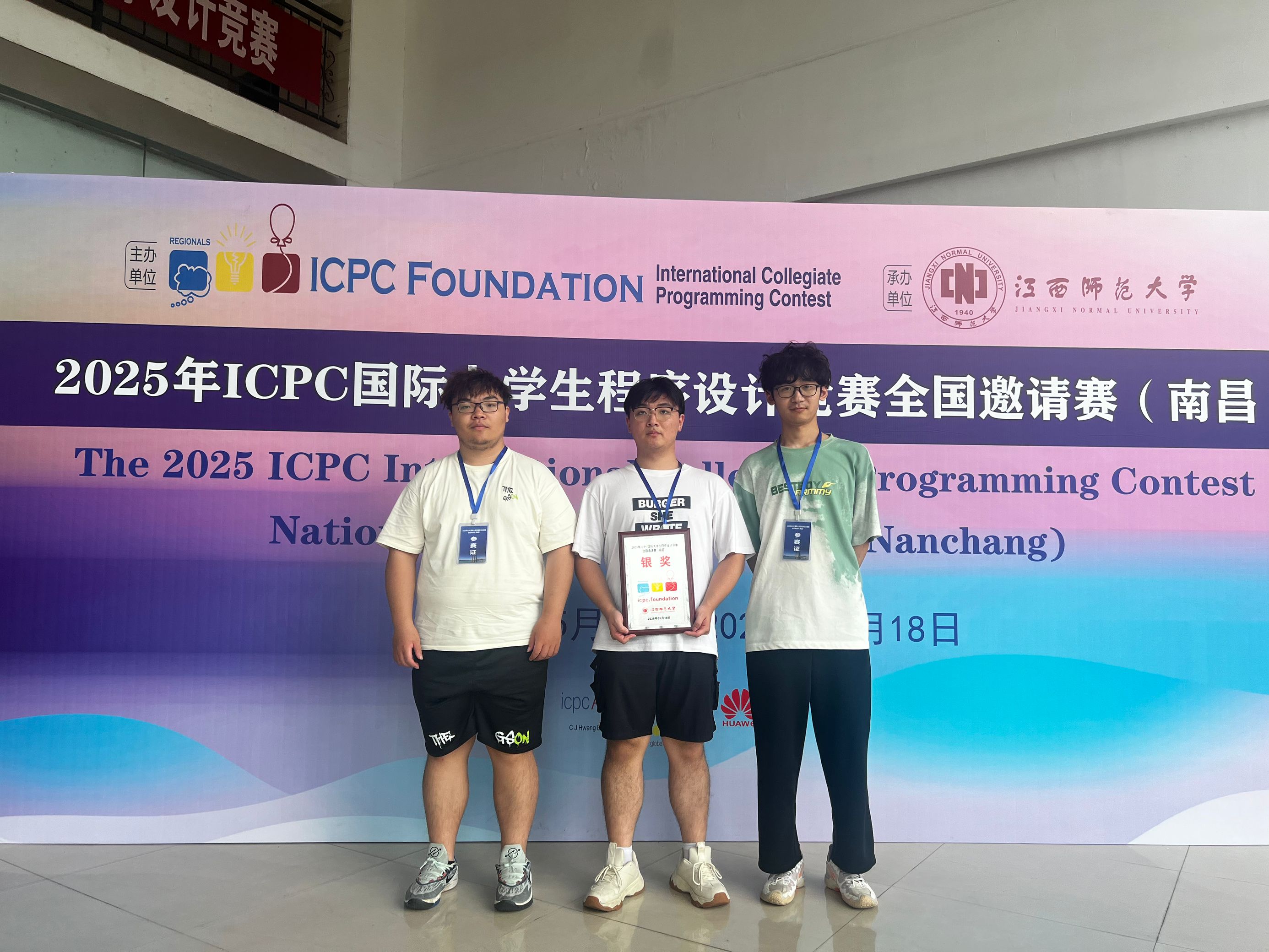 本网讯(特约记者/陈可)5月17日至18日,2025年ICPC国际大学生程序设计竞赛全国邀请赛(南昌)在江西师范大学隆重举行。由我校计算机与软件学院所组成的参赛队,凭借出色的算法设计与稳定的临场发挥,从全国200余所高校的457支代表队中脱颖而出,以完成7道赛题的优异成绩斩获银牌,全国排名第48位,延续我校在该项赛事中的强劲势头。