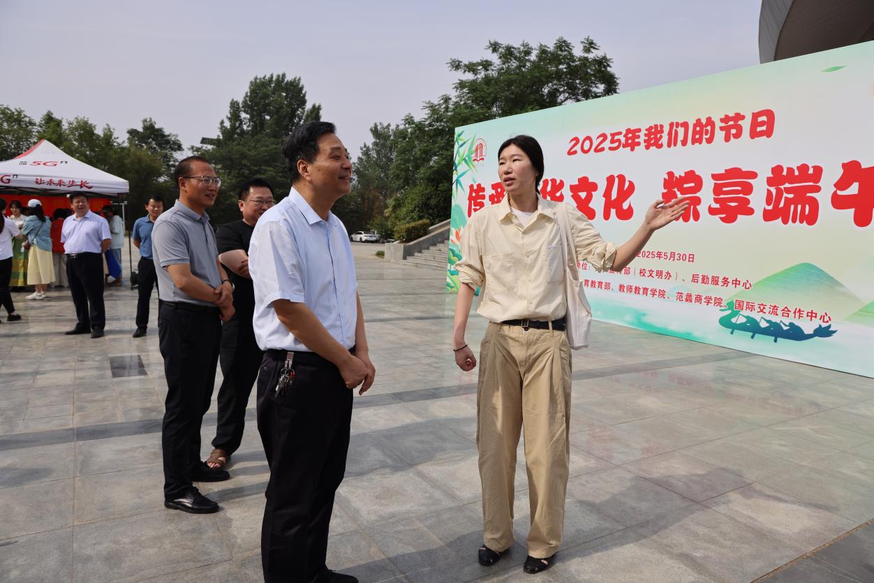 本网讯(学生记者/胡秋阳 武诗婷)艾草清芬漫卷处,粽香情浓满校园。5月30日上午,南阳理工学院东南校区体育馆东侧广场、西北校区范蠡广场、东校区大学生活动中心广场人潮涌动。由校党委宣传部携手后勤服务中心精心打造的“我们的节日·端午”主题文化盛宴在此拉开帷幕,校党委副书记、工会主席董豪,范蠡商学院、教师教育学院、体育教学部、国际交流合作中心、校团委主要负责同志与千余名师生共赴传统文化之约。
