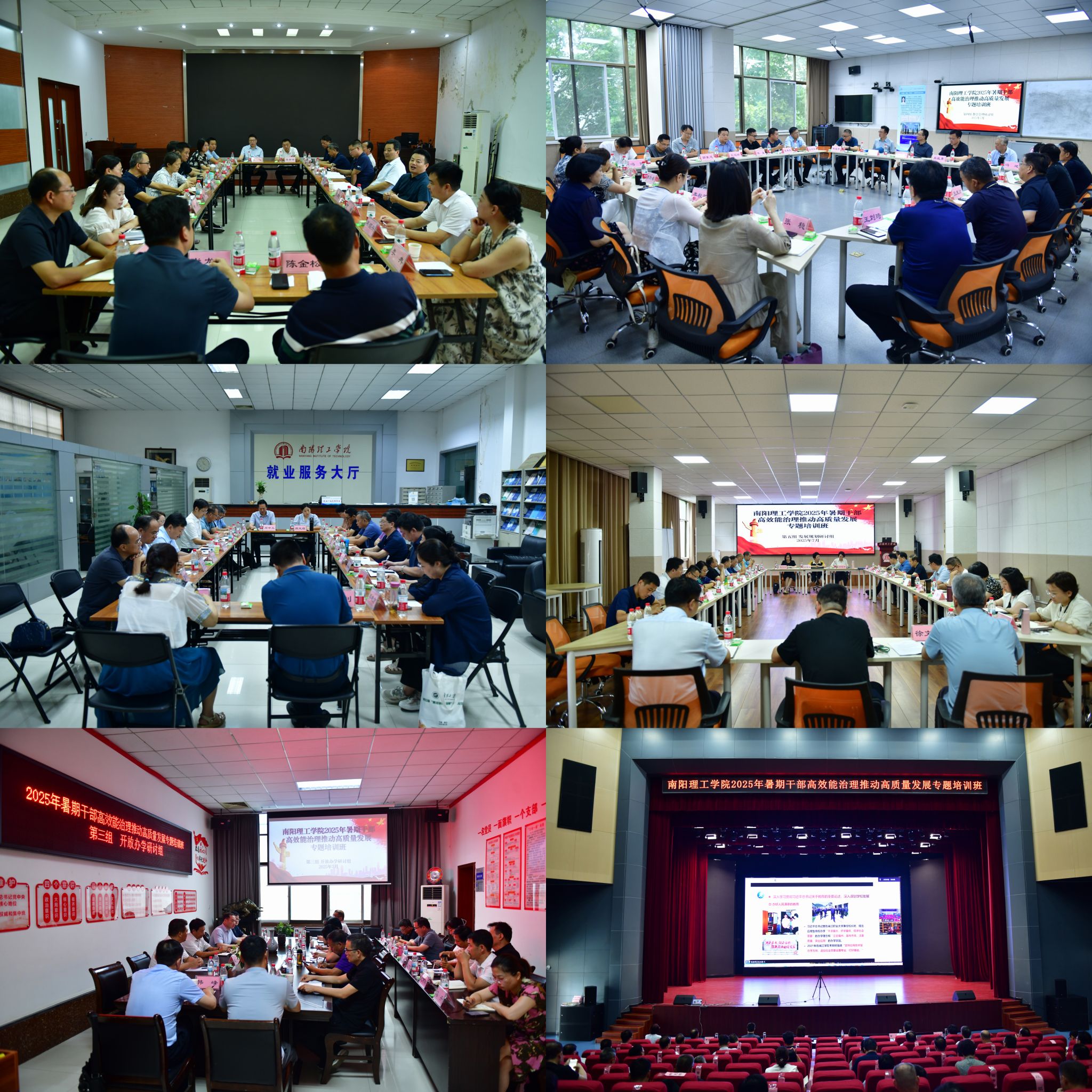 本网讯(特约记者/王闯)7月14日至17日,南阳理工学院举办2025年暑期干部高效能治理推动高质量发展专题培训班,校长郝好山,党委副书记张爱红,党委副书记、工会主席董豪,纪委书记、监察专员于继武,副校长蔡广宇、高芳放、黄金书,以及全体中层干部参加培训。