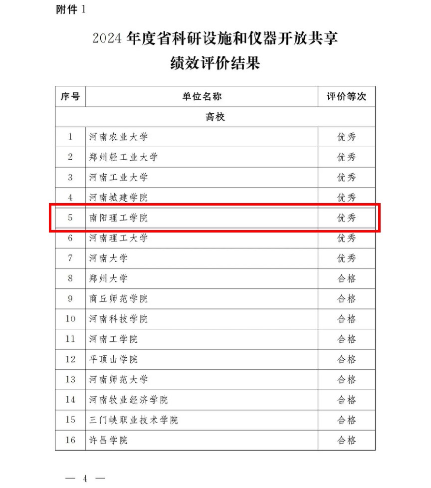 本网讯(特约记者/邹军燕)8月28日,河南省科技厅、财政厅、教育厅联合印发《关于公布2024年度省科研设施和仪器开放共享绩效评价结果的通知》,我校再度获评“优秀”等次,居高校组第五名。