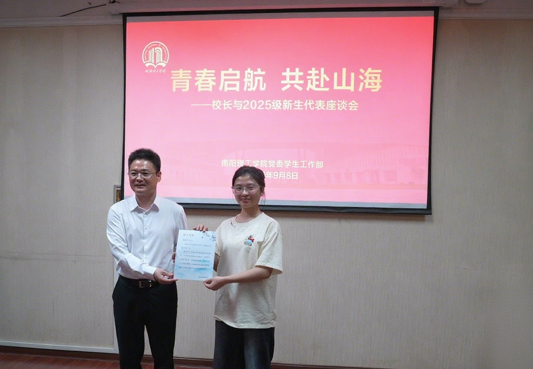 本网讯(特约记者/黄晨)9月8日上午,“青春启航 共赴山海”校长与2025级新生代表座谈会在第一会议室举行。校长郝好山,校党委副书记、工会主席董豪出席座谈会,学生处、后勤服务中心、教务处等相关部门负责人参加座谈。会议由学生处负责同志主持。