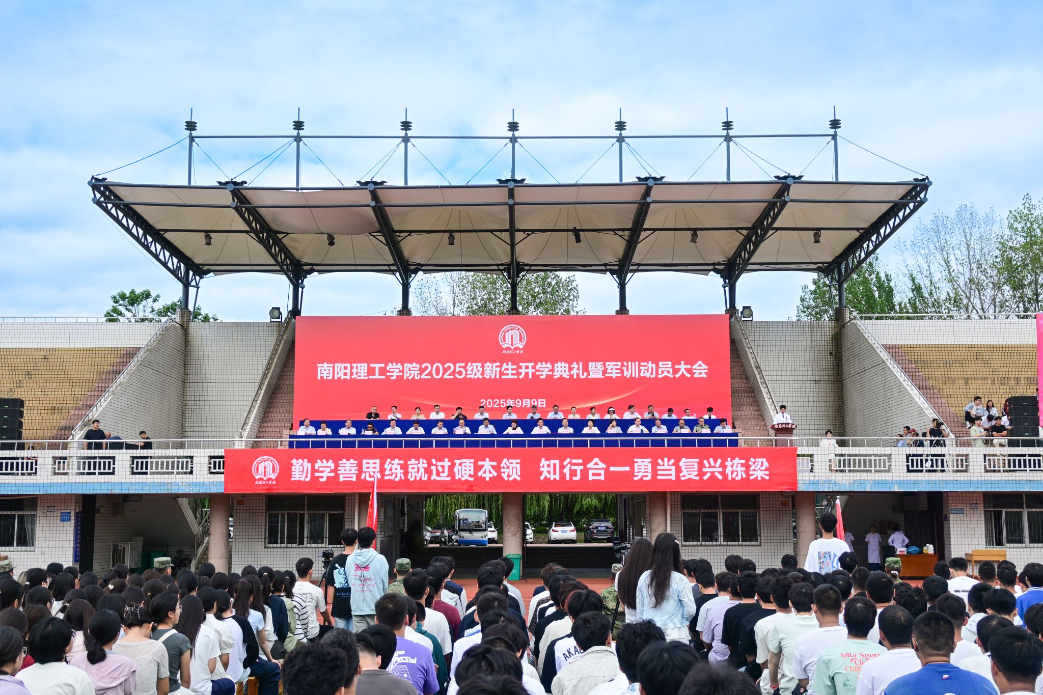 本网讯(学生记者/学通社 朱佳慧 赵梓霏 校对 文雪)秋风送爽启新篇,青春逐梦正当时。9月9日上午,南阳理工学院2025级新生开学典礼暨军训动员大会在东南校区田径场举行。校党委书记张爱红,校长郝好山,校党委副书记、工会主席董豪,校纪委书记、监察专员于继武,副校长蔡广宇、高芳放、黄金书出席大会,相关单位负责人,各教学院党委书记、院长、全体教官及参训学生参加。大会由副校长蔡广宇主持。