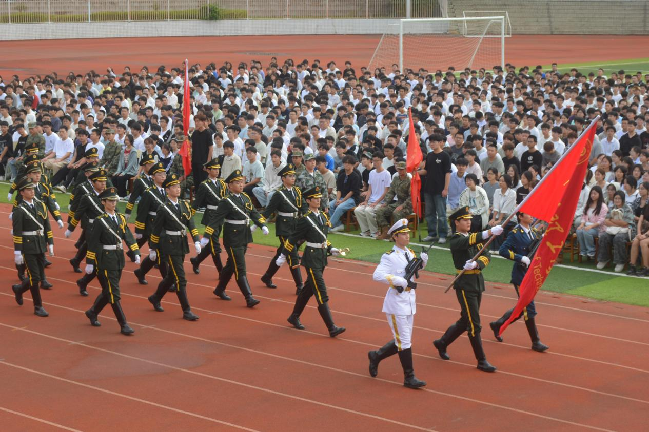 张爱红向人民武装部部长、2025级军训团团长授“军训团”旗。(摄影/符彰嘉 校对/王吉春 审核/郭兴华 编辑/肖邓华 终审/逯忆)